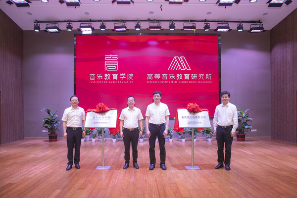 儀式上,省文化和旅游廳黨組成員、副廳長刁玉泉,校黨委書記胡建新,校長王瑞,校黨委副書記、副校長張建國共同為音樂教育學(xué)院、高等音樂教育研究所揭牌。