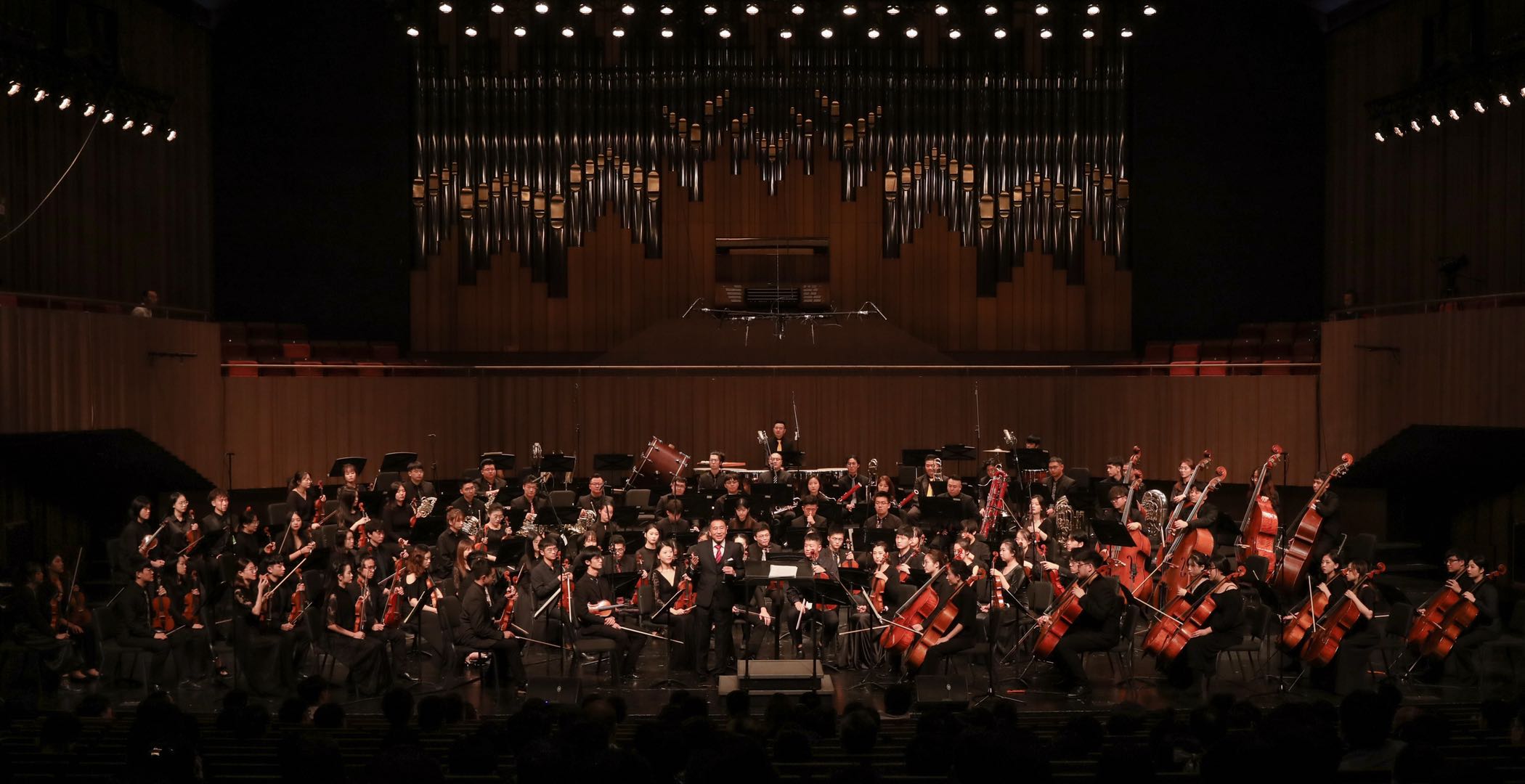 9月26日晚,浙江音樂學(xué)院交響樂團(tuán)2020—2021音樂季交響音樂會在周穎音樂廳隆重上演。這也是學(xué)校樂隊學(xué)院成立以來,交響樂團(tuán)上演的首場音樂會。當(dāng)晚,校黨委書記胡建新、校長王瑞,浙江交響樂團(tuán)團(tuán)長郭義江,以及來自校內(nèi)外的近800名觀眾共同聆聽欣賞了這場精彩的音樂會。