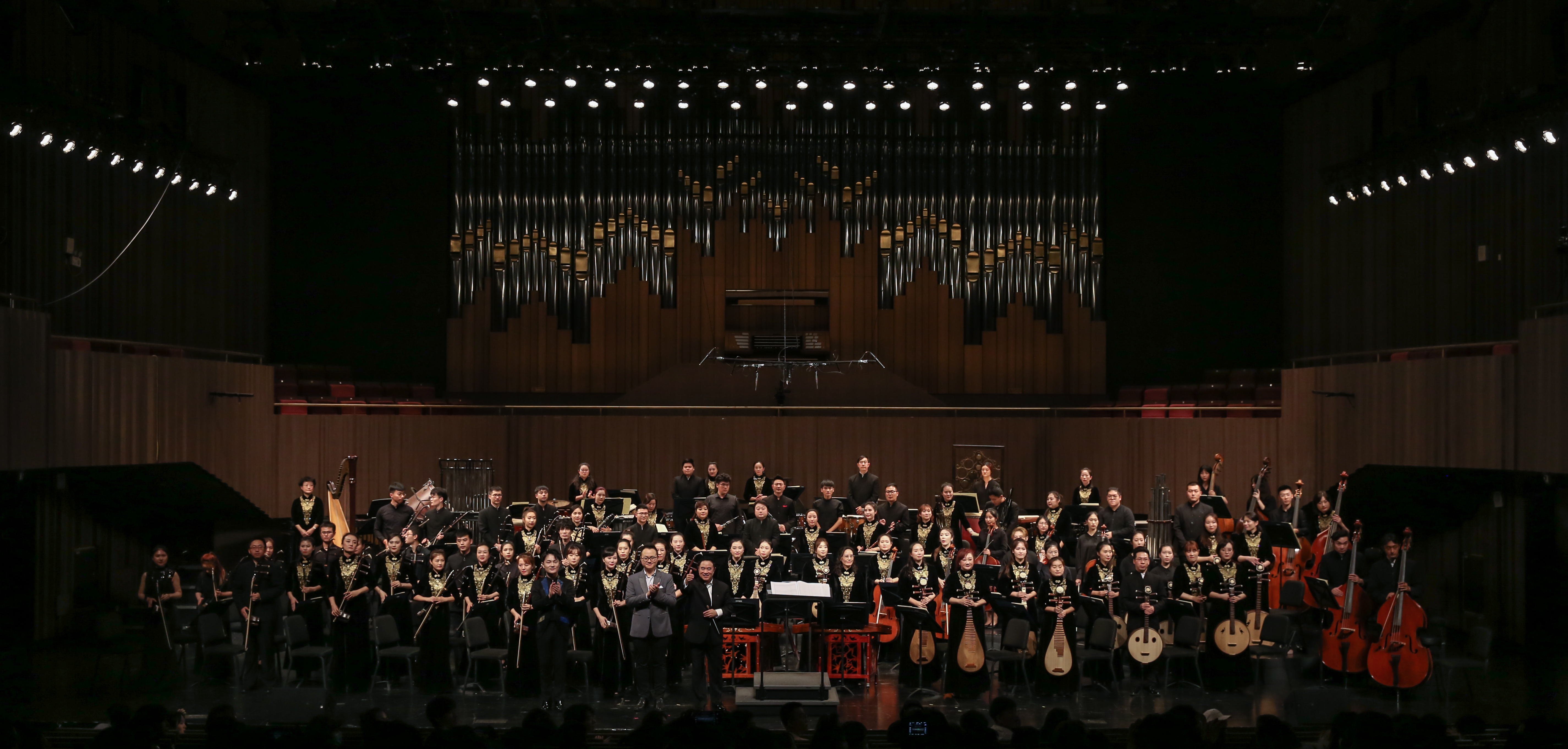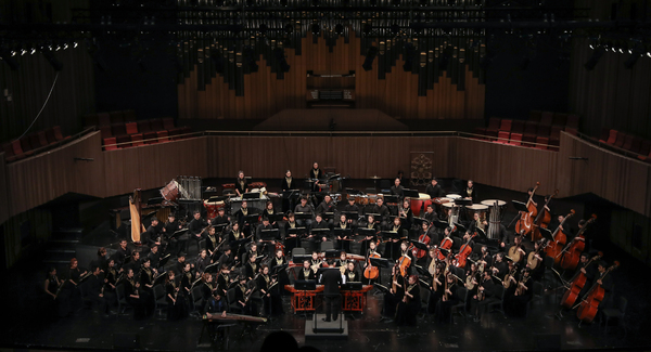 閉幕音樂會上,浙江民族樂團(tuán)依次演奏了著名作曲家郭文景創(chuàng)作的第一部民族樂器協(xié)奏曲《愁空山》(為竹笛和管弦樂隊而作,1992年)、著名作曲家秦文琛的作品《喚鳳》(為嗩吶和管弦樂隊而作,1996年)、我校作曲與指揮系郭鳴教授的作品《錢塘江·源》(為民族管弦樂隊而作,2018年)、王云飛老師的作品《蘭亭》(為古箏和民族管弦樂隊而作,2019年)、著名作曲家劉長遠(yuǎn)的作品《抒情變奏曲》(為民族管弦樂隊而作,2003年)。伴隨著這場跨越近30年的民樂新聲終止,杭城首個現(xiàn)代音樂節(jié)圓滿閉幕。