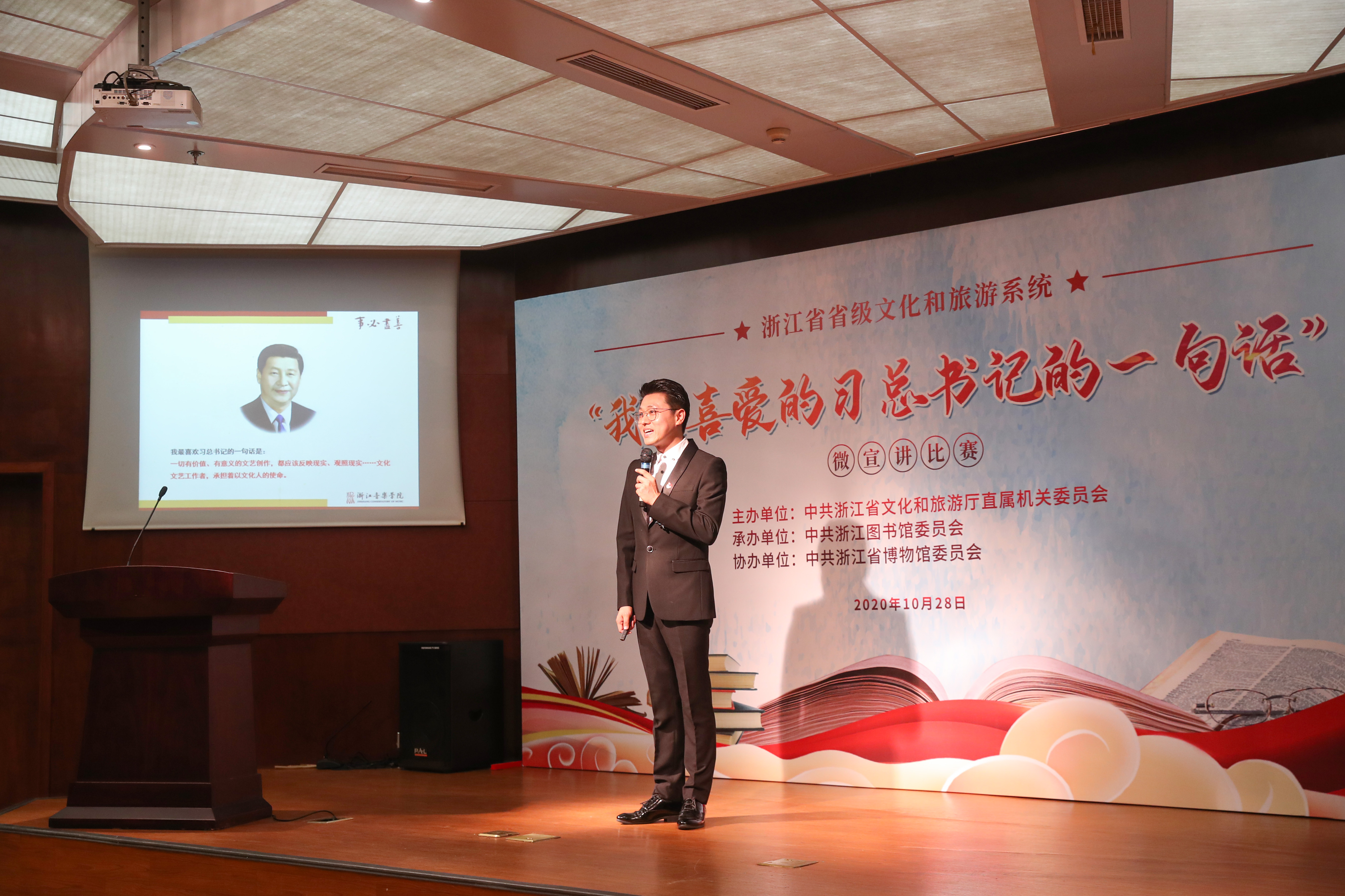 10月28日下午, 省級文化和旅游系統(tǒng)“我最喜愛的習(xí)總書記的一句話”微宣講比賽在省博物館武林館區(qū)舉行。經(jīng)過激烈角逐,我校聲樂歌劇系黨總支副書記張建化獲得一等獎,聲樂歌劇系學(xué)生宋唯一獲得優(yōu)勝獎。