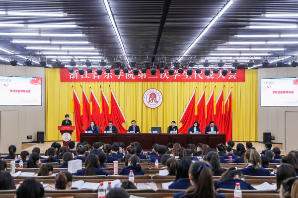 浙江大學(xué)學(xué)生會(huì)主席團(tuán)成員鄭浩陽代表兄弟高校,充分肯定了我校學(xué)生會(huì)工作,并對兩校學(xué)生會(huì)未來的合作與發(fā)展作出展望。第二屆學(xué)生會(huì)主席黃珮瑩受學(xué)校委員會(huì)委托,向大會(huì)作《青春心向黨建功新時(shí)代團(tuán)結(jié)和帶領(lǐng)浙音青年為建設(shè)高水平一流音樂學(xué)院貢獻(xiàn)青春力量》的工作報(bào)告。