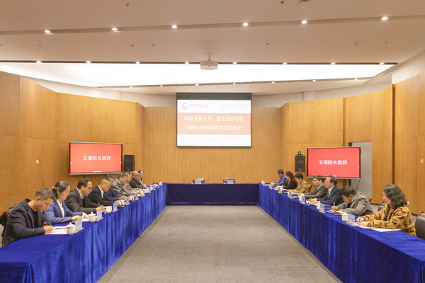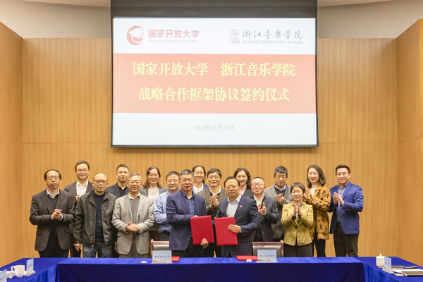 荊德剛代表國(guó)家開(kāi)放大學(xué)一行,對(duì)我校的熱情接待表示感謝。他簡(jiǎn)要介紹了國(guó)家開(kāi)放大學(xué)的人才培養(yǎng)、科研創(chuàng)作和社會(huì)服務(wù)等基本情況,并就其創(chuàng)建“世界一流開(kāi)放大學(xué)”建設(shè)規(guī)劃作了介紹。他表示,國(guó)家開(kāi)放大學(xué)作為全國(guó)最大的一所高校,已累計(jì)培養(yǎng)畢業(yè)生1512萬(wàn)余人,在全國(guó)建設(shè)各類(lèi)學(xué)習(xí)中心4000余個(gè),構(gòu)建了覆蓋全國(guó)、服務(wù)全民的“辦學(xué)共同體”網(wǎng)絡(luò)體系。此次合作將有效發(fā)揮國(guó)家開(kāi)放大學(xué)作為全民終身學(xué)習(xí)和在線學(xué)習(xí)主平臺(tái)的積極作用,提升浙江音樂(lè)學(xué)院專(zhuān)業(yè)特色優(yōu)質(zhì)教育資源在開(kāi)放大學(xué)體系的影響力和輻射力,實(shí)現(xiàn)雙方資源的共建共享、互利共贏,打造開(kāi)放大學(xué)與普通高校合作的典范,探索高等教育和未來(lái)藝術(shù)教育發(fā)展的新模式、新路徑,共同推動(dòng)學(xué)習(xí)型社會(huì)和終身教育體系建設(shè)。