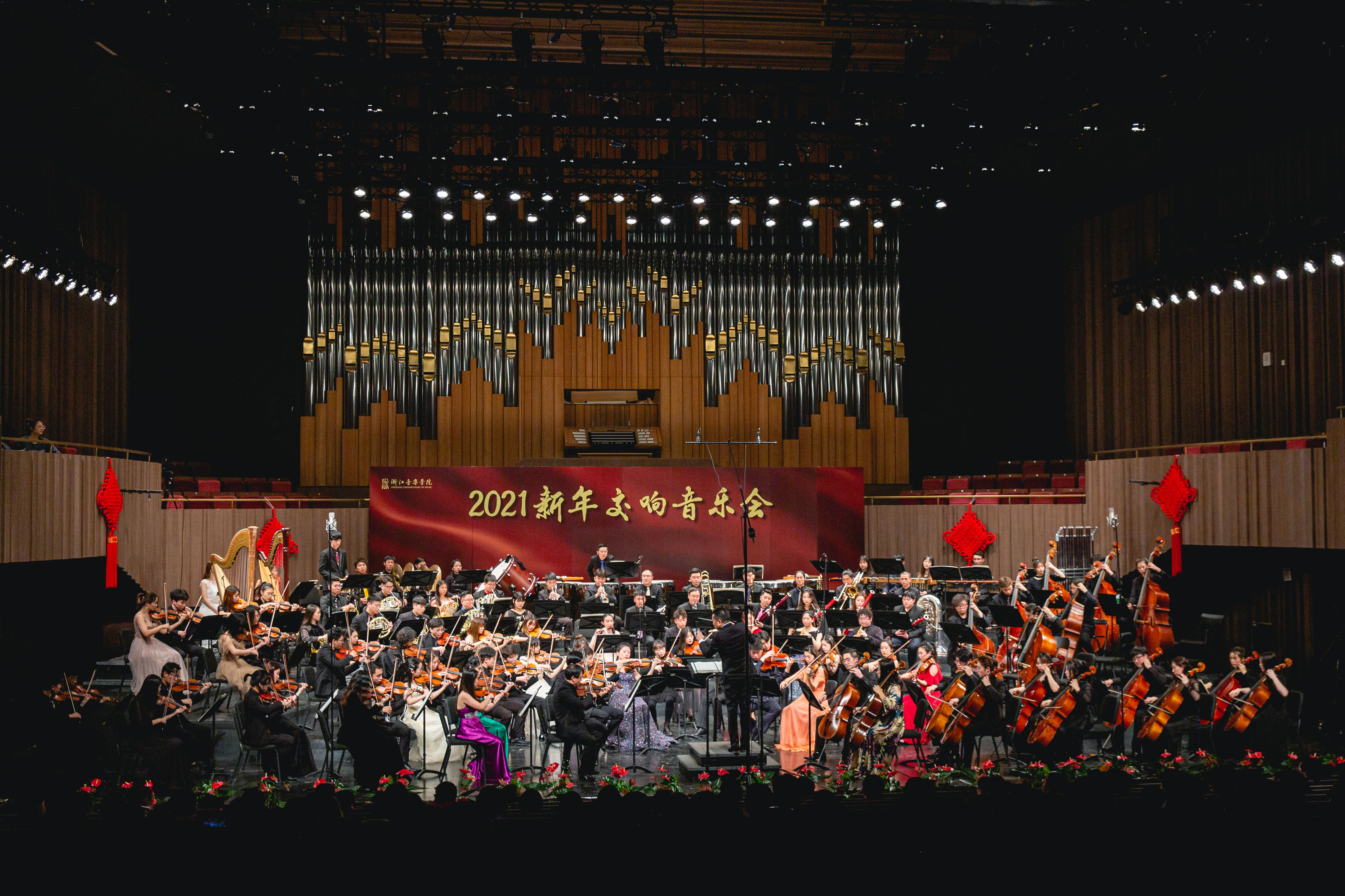浙江音樂學(xué)院交響樂團(tuán)是學(xué)院重點(diǎn)建設(shè)的四大實(shí)驗(yàn)藝術(shù)團(tuán)之一,演奏員由管弦系青年教師與優(yōu)秀學(xué)生組成。此次新年交響音樂會(huì)充分展現(xiàn)了學(xué)院師生精湛高超的藝術(shù)水平,為管弦系、樂隊(duì)學(xué)院學(xué)生提供了實(shí)踐的平臺(tái),也為師生帶來了一場經(jīng)典集萃的新年音樂盛宴。