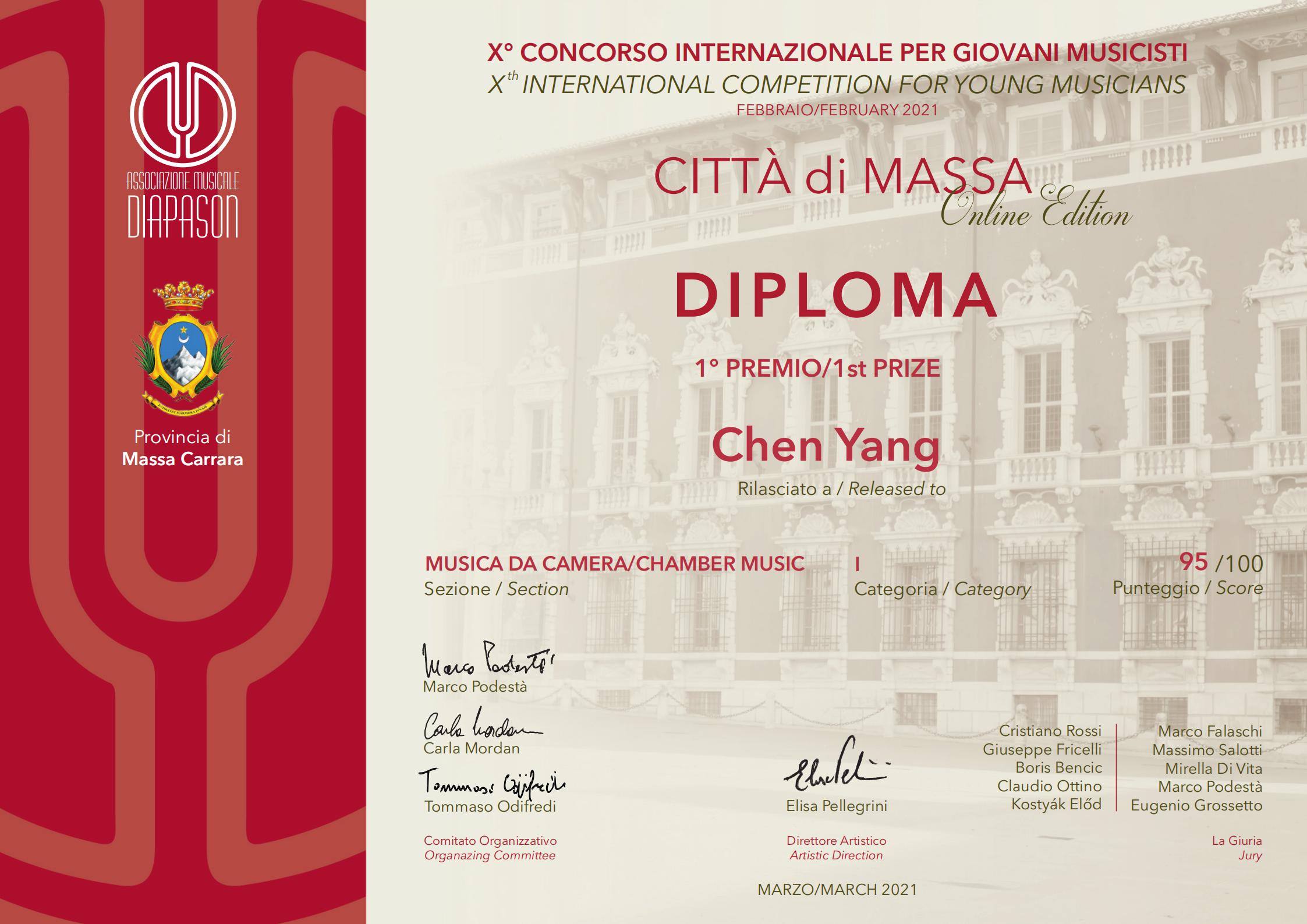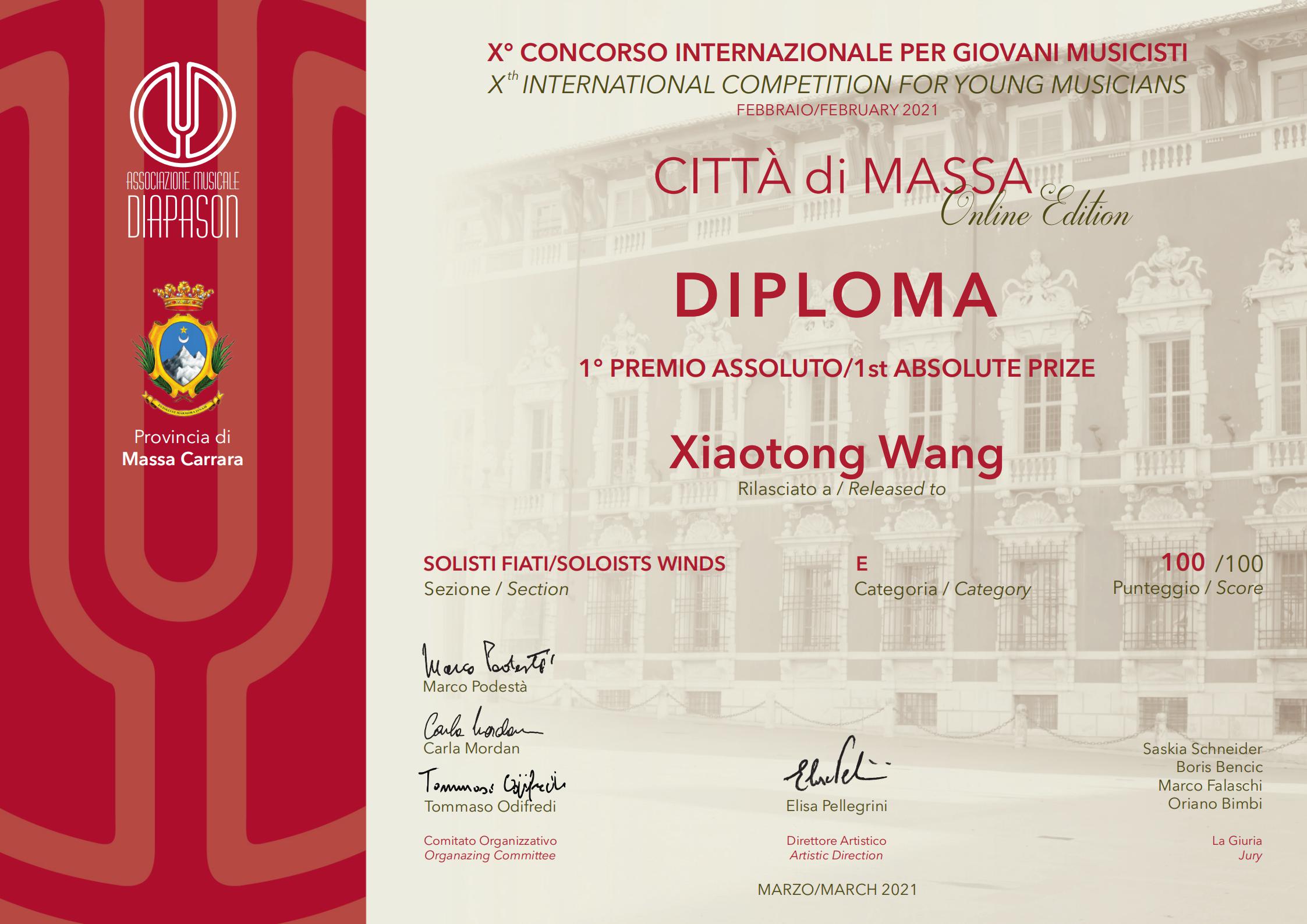 據(jù)悉,馬薩第十屆國際青年音樂家比賽由Diapason國際音樂家協(xié)會與馬薩省政府聯(lián)合舉辦,旨在發(fā)掘青年演奏家的音樂天分,通過比賽不斷提升其專業(yè)演奏水準。評委由來自意大利、美國、德國、法國、斯洛文尼亞等多個國家的優(yōu)秀演奏家組成。