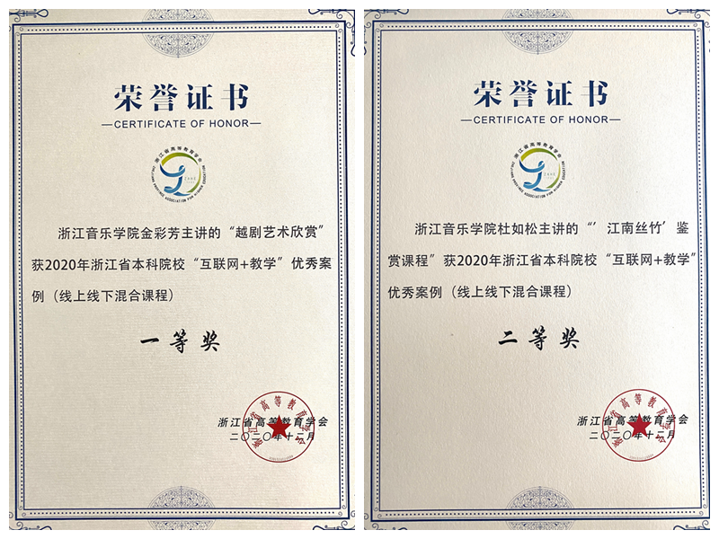 近日,浙江省高等教育學(xué)會(huì)公布了2020年浙江省本科院校“互聯(lián)網(wǎng)+教學(xué)”優(yōu)秀案例(線上線下混合課程)評(píng)選結(jié)果,學(xué)院申報(bào)的2門課程全部獲獎(jiǎng)。戲劇系教師金彩芳的《越劇藝術(shù)欣賞》課程榮獲一等獎(jiǎng),國(guó)樂(lè)系教師杜如松的《“江南絲竹”鑒賞課程》課程榮獲二等獎(jiǎng)。