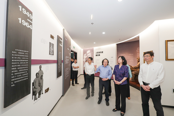 孟冬一行首先參觀了大劇院、周穎音樂(lè)廳、現(xiàn)代音樂(lè)廳等設(shè)施場(chǎng)所,饒有興味地觀看了學(xué)院主辦的《毛澤東詩(shī)詞藝術(shù)歌曲音樂(lè)會(huì)》現(xiàn)場(chǎng)排練,對(duì)學(xué)院建校以來(lái)在硬件建設(shè)、人才培養(yǎng)、藝術(shù)創(chuàng)作、文化服務(wù)等方面取得的成果給予高度評(píng)價(jià)。隨后,孟冬一行走訪了數(shù)字音樂(lè)(浙江)省工程研究中心、施光南音樂(lè)藝術(shù)館等。在數(shù)字音樂(lè)(浙江?。┕こ碳夹g(shù)研究中心,她詳細(xì)詢(xún)問(wèn)錄音棚的規(guī)模、功能及特色,現(xiàn)場(chǎng)賞聽(tīng)了研究中心制作的高質(zhì)量音樂(lè)作品,對(duì)研究中心下一步更好服務(wù)地方文化建設(shè),促進(jìn)產(chǎn)教融合提出寶貴建議。在施光南音樂(lè)藝術(shù)館,她仔細(xì)觀看了館藏圖片和實(shí)物,表示作為新中國(guó)樂(lè)壇上成就卓然的作曲家,作為“時(shí)代歌手”與“人民音樂(lè)家”,施光南始終堅(jiān)持把愛(ài)國(guó)作為音樂(lè)創(chuàng)作的永恒主題,為人民書(shū)寫(xiě)創(chuàng)作、為時(shí)代譜寫(xiě)贊歌,是我們開(kāi)展黨史學(xué)習(xí)教育和音樂(lè)通識(shí)教育的寶貴素材,希望學(xué)院進(jìn)一步發(fā)揮好、拓展好藝術(shù)館在思政教育、專(zhuān)業(yè)教育、學(xué)術(shù)研究等方面的重要功能。孟冬一行還參觀了《音樂(lè)—繪畫(huà)聯(lián)覺(jué)藝術(shù)創(chuàng)作與實(shí)踐》課程優(yōu)秀學(xué)生作品展,對(duì)學(xué)院在人才培養(yǎng)過(guò)程中將音樂(lè)與美術(shù)進(jìn)行跨學(xué)科交叉融合的理念和思路給予贊揚(yáng)。