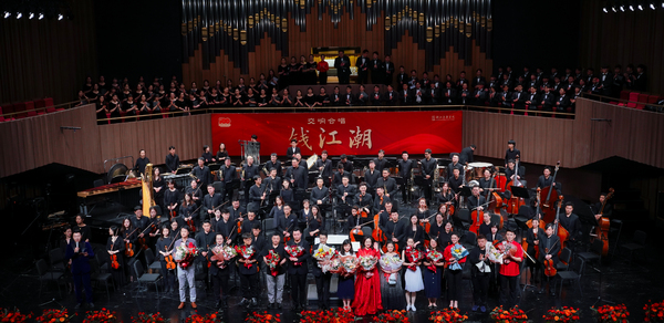 《錢江潮》是學(xué)院慶祝建黨100周年系列主題活動的重點演出之一。為慶祝建黨百年,學(xué)院充分發(fā)揮特色和優(yōu)勢,精心策劃了百余項紅色主題作品、文藝創(chuàng)作匯演等,不僅呈現(xiàn)了大批藝術(shù)精品,還將高雅藝術(shù)送出校園、送到百姓身邊,為浙江文化窗口建設(shè)和慶祝建黨百年增添華彩。