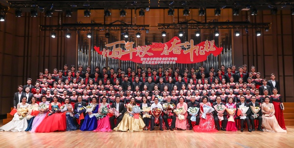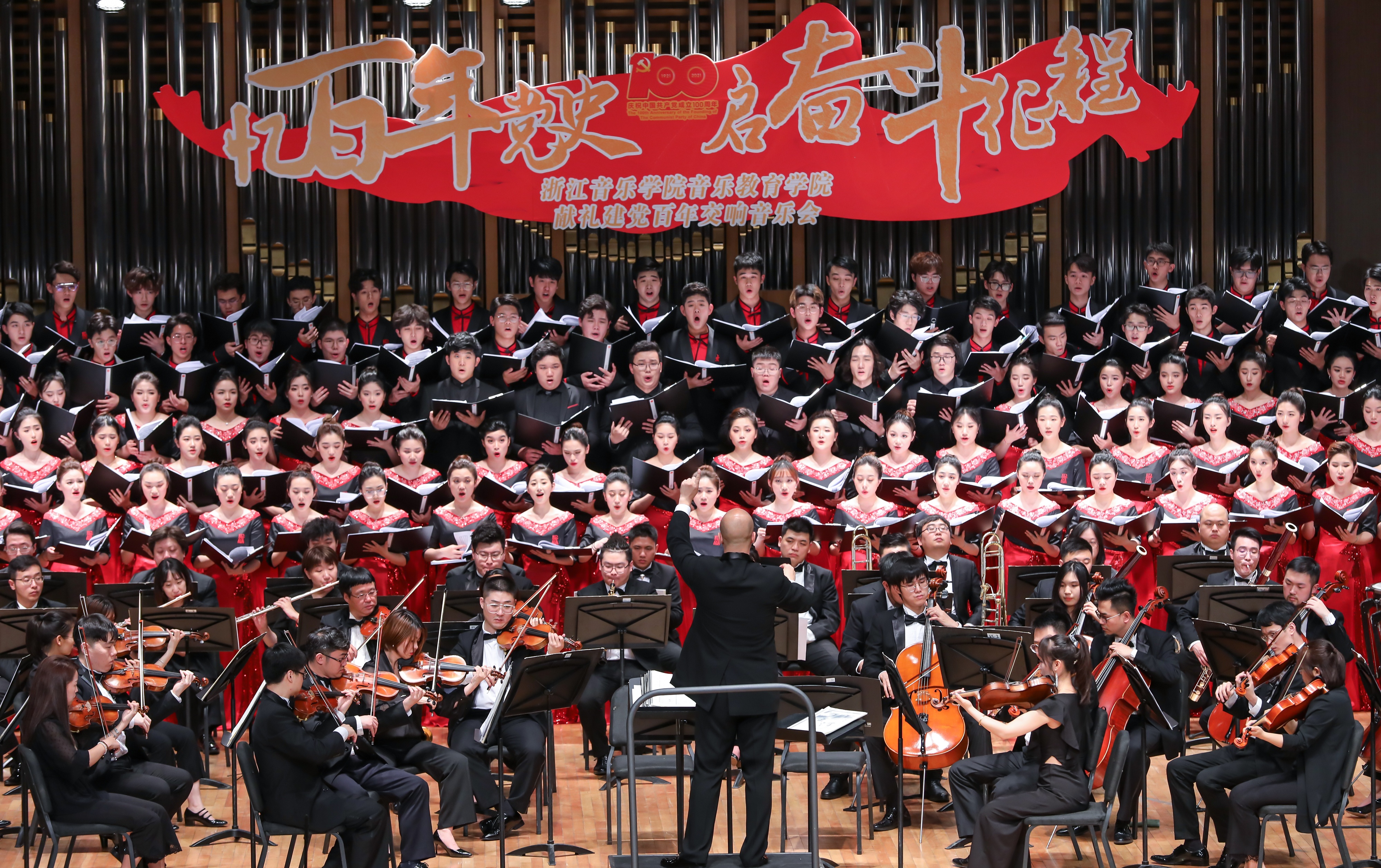 本場音樂會是音樂教育學(xué)院黨史學(xué)習(xí)教育的重要活動之一。百余名師生與浙江交響樂團(tuán)共同演繹了多首展現(xiàn)黨和國家在不同發(fā)展時期的經(jīng)典音樂作品,獻(xiàn)禮黨的百年華誕,歌頌黨的豐功偉績,傳承黨的紅色基因。音樂會由4個篇章組成,第一篇章“烽火歲月”,合唱《過雪山草地》《憶秦娥·婁山關(guān)》重溫了中國工農(nóng)紅軍長征的壯麗史詩和長征精神,男聲獨(dú)唱《延安頌》、鋼琴協(xié)奏《黃河》、合唱《七律·人民解放軍占領(lǐng)南京》致敬以毛澤東同志為代表的老一輩革命家和前仆后繼、英勇作戰(zhàn)的革命志士。第二篇章“激情年代”,以《祖國頌》《你是這樣的人》《唱支山歌給黨聽》三首合唱歌頌了中國革命的偉大勝利,共同慶祝祖國的輝煌成就。第三篇章“改革征程”,合唱《春天的故事》《在燦爛陽光下》,男聲獨(dú)唱《把一切獻(xiàn)給黨》,描繪了中國在改革和建設(shè)事業(yè)上開創(chuàng)新局面,神州大地一派欣欣向榮的美好圖景。第四篇章“偉大復(fù)興”,合唱《中國進(jìn)入新時代》《不忘初心》,女聲組唱《我愛你,中國》抒發(fā)了師生對中國特色社會主義進(jìn)入新時代的滿腔豪情,以及對黨和祖國的深情熱愛,學(xué)院黨員教師金奇原創(chuàng)歌曲《綠水青山》《嘿,中國?!氛宫F(xiàn)了音教人奮進(jìn)新時代的使命擔(dān)當(dāng)。在合唱與交響的交相輝映中,在感人肺腑的歌聲里,師生回顧黨領(lǐng)導(dǎo)中國人民革命、建設(shè)、改革和發(fā)展的輝煌歷史,學(xué)習(xí)革命英雄的精神和品格,汲取奮發(fā)力量,共同為推進(jìn)中國特色社會主義事業(yè)、開啟新時代實現(xiàn)中華民族偉大復(fù)興中國夢不懈奮斗。