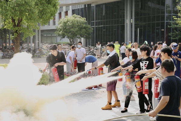 演練結束后,西湖區(qū)特勤大隊指導員建樂樂對本次演練進行技術點評,并對學院的消防安全工作提出了建議。師生員工還一起學習了滅火器的正確使用方法。