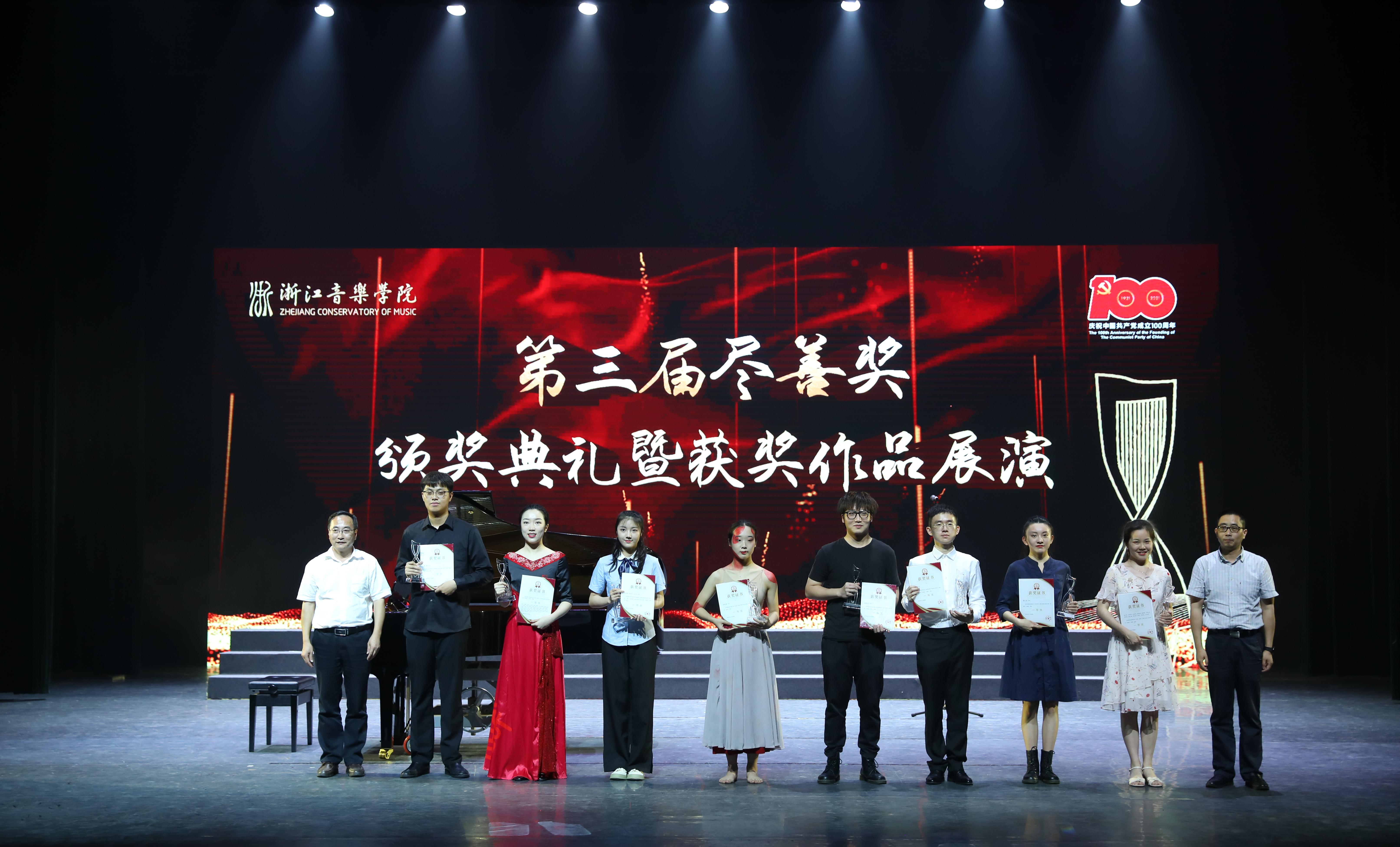 6月16日晚,學(xué)院第三屆“盡善獎”頒獎典禮暨優(yōu)秀作品展演在舞蹈劇場隆重舉行。在本次大賽中,《祖賓斯基爵士帕蒂塔無窮動》等8個作品獲一等獎;《胡旋舞》等8個作品獲二等獎;《山居秋暝》等12個作品獲三等獎;《The World Will Know》等17個作品獲優(yōu)秀獎;吳雯怡、狄佳文、劉瓅元、洪杰等11位教師獲優(yōu)秀指導(dǎo)教師獎。學(xué)院黨政領(lǐng)導(dǎo)班子成員賈秀英、楊九華、張偉波、應(yīng)達(dá)偉、李俊出席典禮,并為優(yōu)秀指導(dǎo)教師和獲獎學(xué)生頒獎。各學(xué)院、系(部)負(fù)責(zé)人,教師代表及參賽選手參加頒獎典禮并觀摩了展演活動。