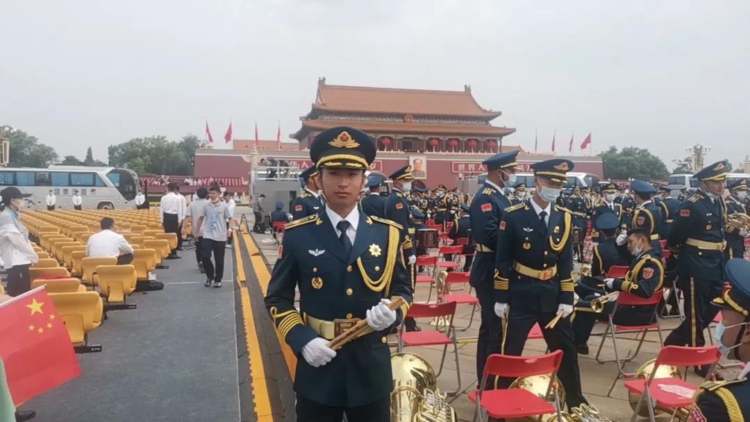 軍樂(lè)激揚(yáng),奏唱百年大黨風(fēng)華正茂。在軍樂(lè)團(tuán)的列隊(duì)方陣中,2020屆浙音畢業(yè)生、解放軍軍樂(lè)團(tuán)的武亞?wèn)|擔(dān)任長(zhǎng)號(hào)演奏員并兼為安全管理員。為了圓滿完成本次演出任務(wù),他們加班加點(diǎn)刻苦訓(xùn)練,在烈日下一站就是三四個(gè)小時(shí),甚至一整天時(shí)間,最終實(shí)現(xiàn)了“站2小時(shí)不倒、坐2小時(shí)不動(dòng)、吹2小時(shí)不錯(cuò)”的目標(biāo),在天安門廣場(chǎng)前奏出“千人合一”的恢宏強(qiáng)音。