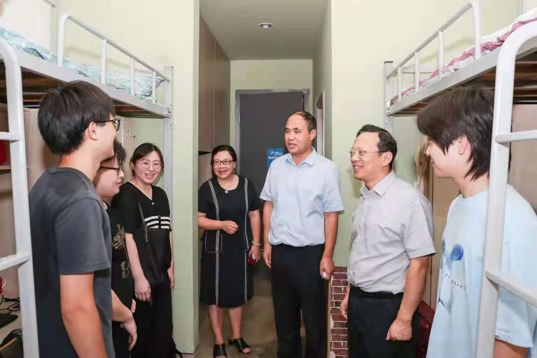 上午,學(xué)院黨政領(lǐng)導(dǎo)班子成員王瑞、賈秀英、王均寅、張偉波、應(yīng)達(dá)偉、汪洋、李俊及相關(guān)部門負(fù)責(zé)人來到迎新報到現(xiàn)場,與前來報到的2021級新生親切交流,向他們表示熱烈歡迎,并慰問了現(xiàn)場工作人員與志愿者。隨后,學(xué)院領(lǐng)導(dǎo)來到公寓看望新生。