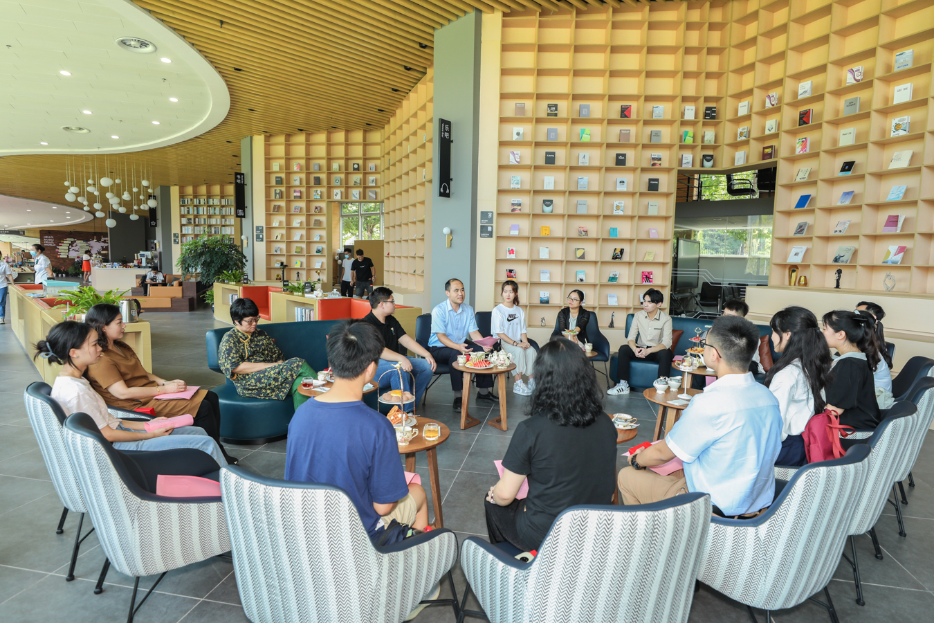 2021級新生座談會在創(chuàng)意空間召開。黨委副書記王均寅與大家展開深入交流,并為兩名今天過生日的新生送上祝福。