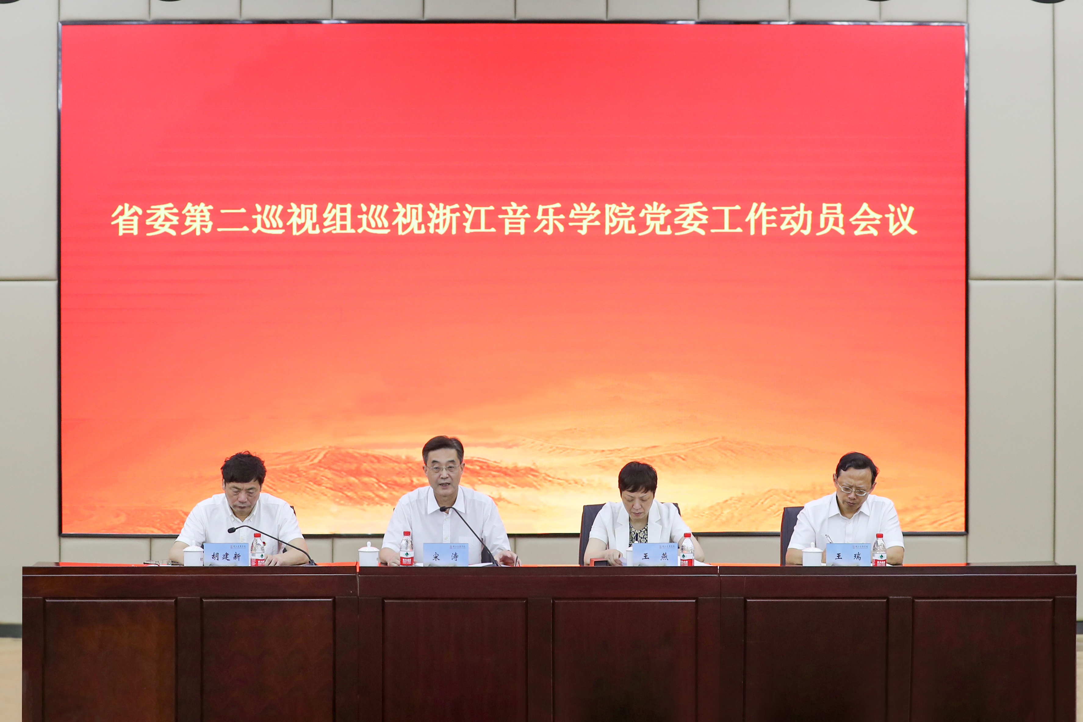 根據(jù)省委統(tǒng)一部署,2021年9月14日上午,省委第二巡視組巡視浙江音樂(lè)學(xué)院黨委工作動(dòng)員會(huì)議召開(kāi)。會(huì)前,省委第二巡視組組長(zhǎng)宋濤主持召開(kāi)與學(xué)校黨委書記胡建新,黨委副書記、院長(zhǎng)王瑞的見(jiàn)面溝通會(huì),傳達(dá)了省委書記專題會(huì)議的有關(guān)精神,通報(bào)了有關(guān)工作安排。會(huì)上,宋濤作了動(dòng)員講話,對(duì)做好巡視工作提出要求。胡建新主持會(huì)議并作表態(tài)發(fā)言。