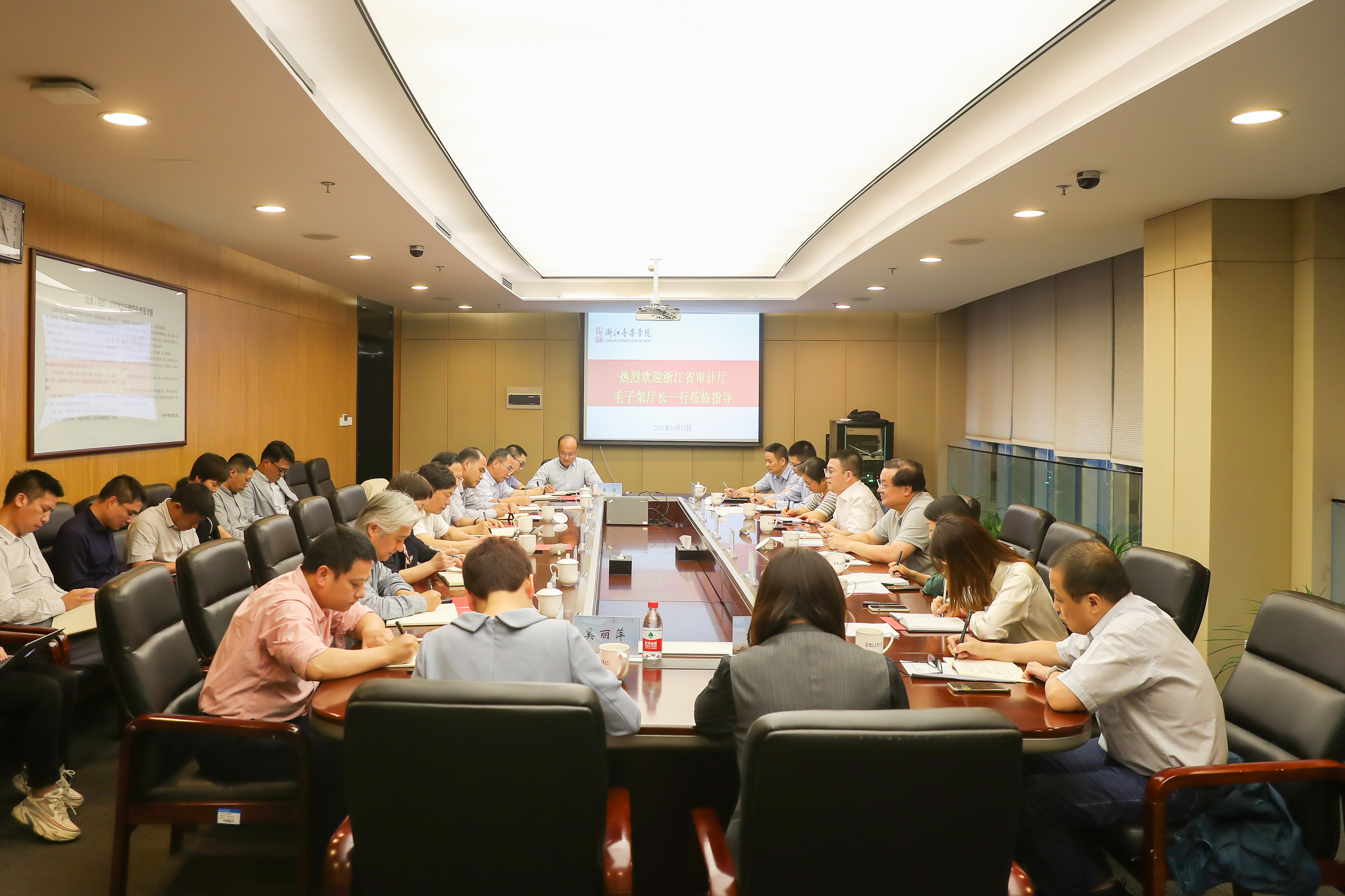座談會上,學(xué)院黨委書記胡建新對毛子榮一行的蒞臨指導(dǎo)表示熱烈的歡迎和誠摯的感謝,并簡要介紹了學(xué)院學(xué)科建設(shè)、教學(xué)科研等基本情況,以及在“十三五”期間取得的工作成績和“十四五”期間的工作目標(biāo)等。他表示,審計是對學(xué)院重大決策的精準(zhǔn)把脈,也是對學(xué)院治理能力、領(lǐng)導(dǎo)干部履職能力的全面體檢。學(xué)院上下將充分認識經(jīng)濟責(zé)任審計的重要意義,貫徹審計相關(guān)精神,對審計發(fā)現(xiàn)的問題主動認領(lǐng)、照單全收、即知即改、扎實整改,使審計工作真正為學(xué)院建設(shè)高水平一流藝術(shù)院校保駕護航。