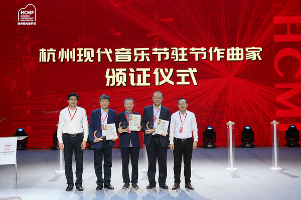 開幕式上,學(xué)院黨委書記胡建新與刁玉泉為駐節(jié)作曲家張千一、唐建平、賈國(guó)平頒發(fā)駐節(jié)藝術(shù)家證書。