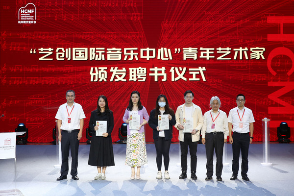 學(xué)院副院長(zhǎng)楊九華、汪洋,藝創(chuàng)小鎮(zhèn)黨委書記、主任王盛為即將入駐“藝創(chuàng)國(guó)際音樂(lè)中心”的4位青年藝術(shù)家頒發(fā)聘書。