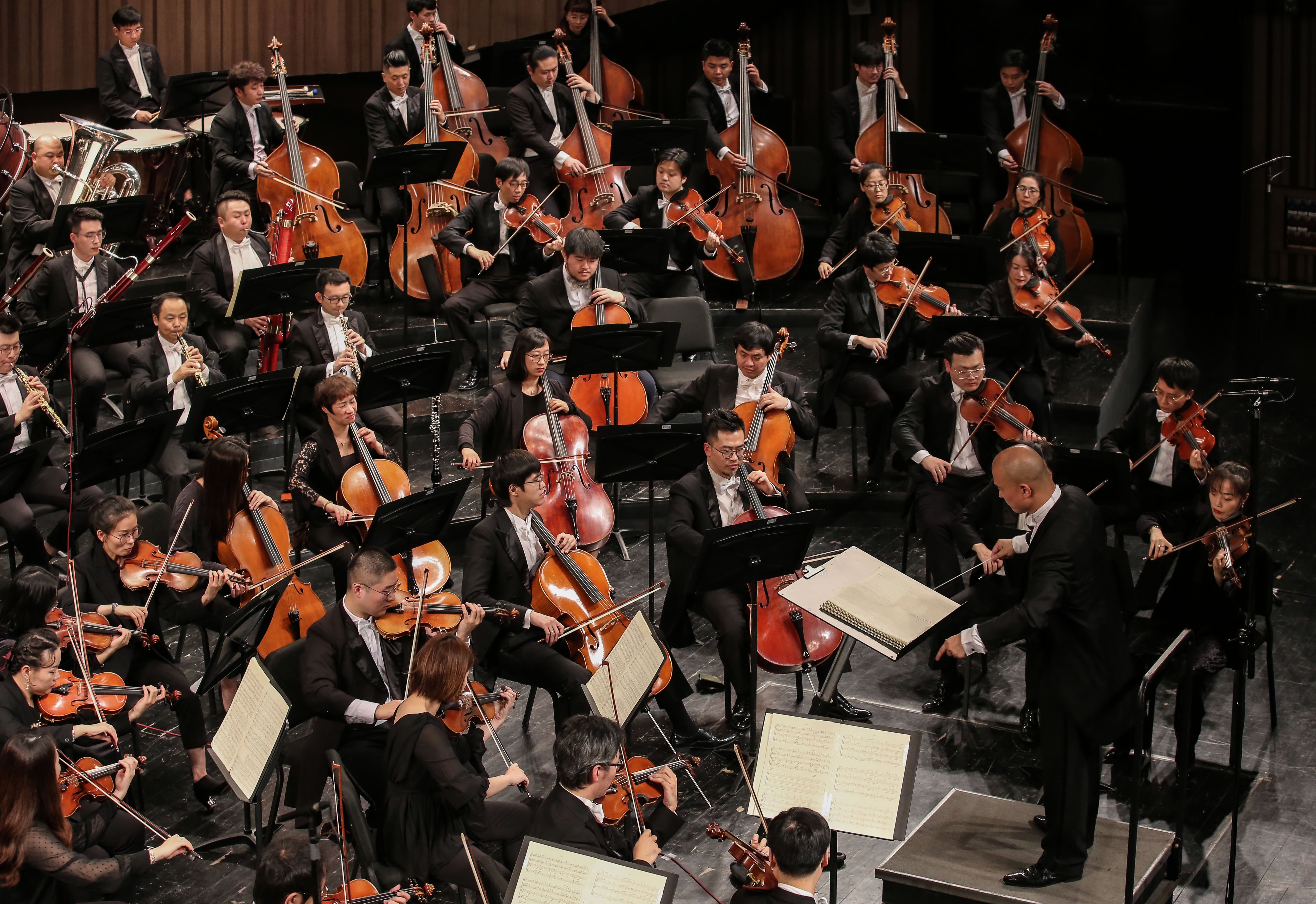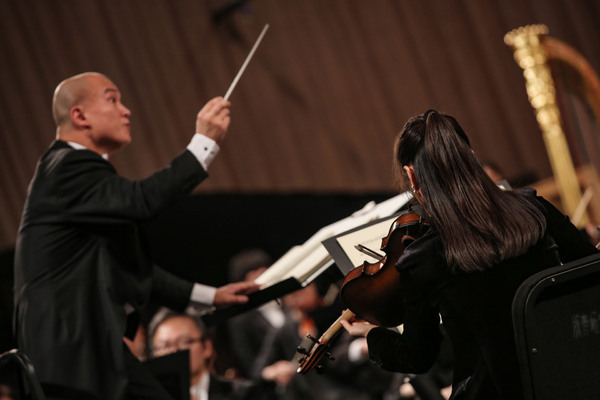 第二首曲目是來自中央音樂學(xué)院的青年作曲家付文杰所創(chuàng)作的《戲·韻》。其部分創(chuàng)作元素來源于中國民間傳統(tǒng)吹打樂和戲曲音樂,整首作品的基調(diào)雄壯熱烈,通過快速動感的音型交替展現(xiàn)不同的音樂性格。其中,打擊樂的使用是一大亮點,在與整個樂隊的交互過程中將音響發(fā)展至滿勢。作曲家意圖以西洋管弦樂隊的音響表現(xiàn)傳統(tǒng)吹打樂中的“細(xì)吹鑼鼓”與“粗吹鑼鼓”,立足于中國傳統(tǒng)音樂,并以當(dāng)代的音樂語言去表達(dá)其音樂內(nèi)涵。