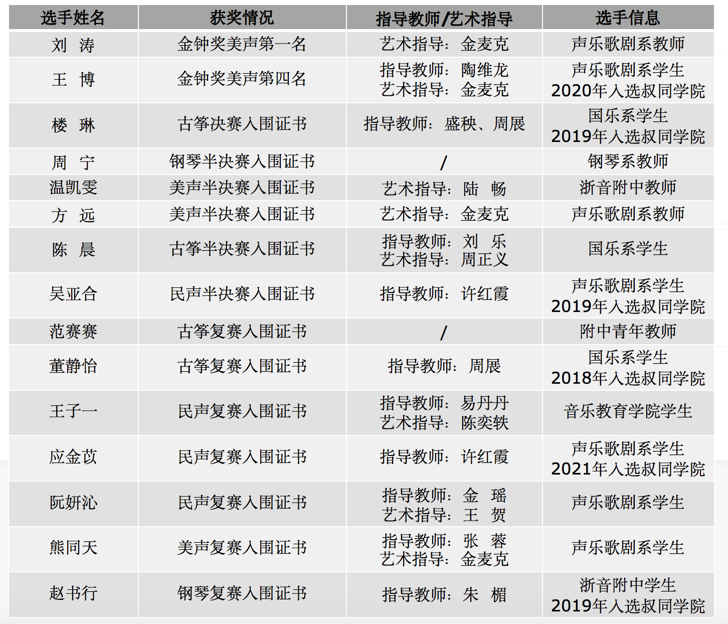 近年來,學(xué)院探索構(gòu)建了李叔同學(xué)院、五大學(xué)院等符合高層次專業(yè)音樂藝術(shù)人才成長(zhǎng)規(guī)律的多元化、個(gè)性化人才培養(yǎng)模式。本屆金鐘獎(jiǎng)入圍、獲獎(jiǎng)選手王博、樓琳、吳亞合、董靜怡、應(yīng)金苡、趙書行,都是李叔同學(xué)院的學(xué)生。李叔同學(xué)院秉承李叔同先生“促社會(huì)之健全”“感精神之粹美”的音樂教育理想,遵循“事必盡善”校訓(xùn)精神,秉持“寧缺毋濫”的選拔原則,采用了“立足校內(nèi)、聯(lián)合校外”的會(huì)課式集體教學(xué),為優(yōu)秀人才制定了“一人一策”“量體裁衣”的個(gè)性化教學(xué)模式,助力優(yōu)秀音樂人才更好成長(zhǎng)。