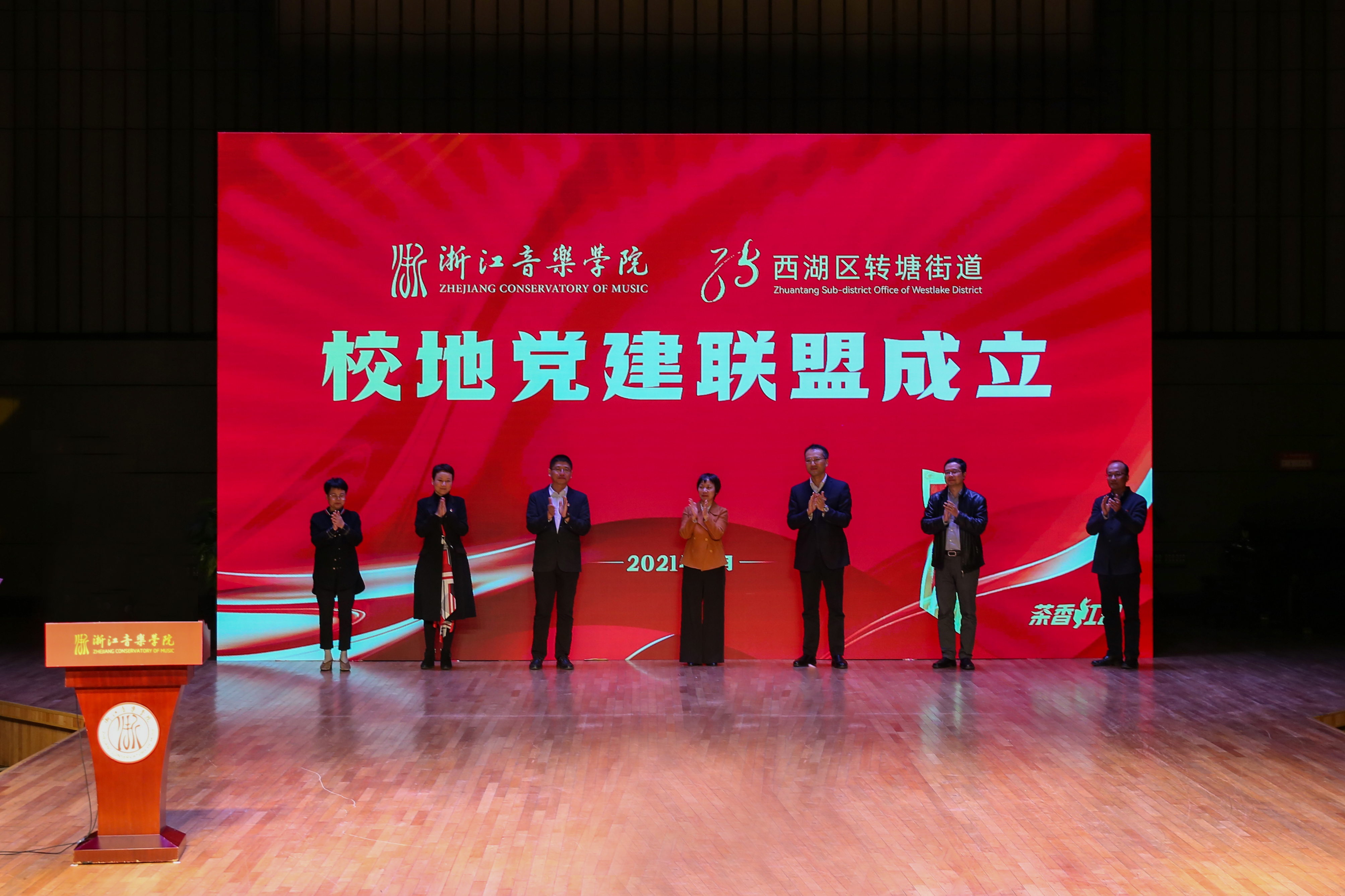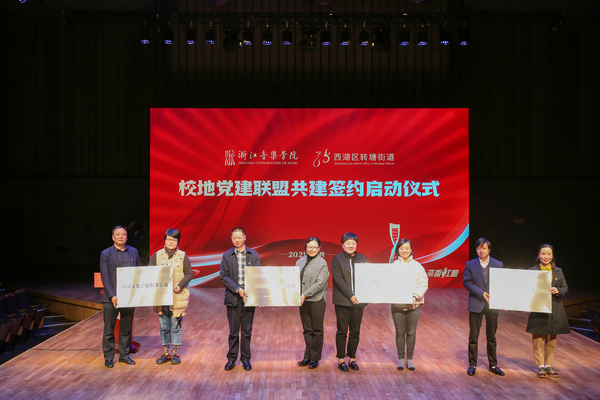 為貫徹落實省委基層黨建工作會議精神和省委文化工作會議精神,進一步助力打造之江藝術長廊建設,強化紅色美育賦能未來鄉(xiāng)村建設,11月10日下午,學院與轉塘街道黨建聯(lián)盟共建啟動儀式在現(xiàn)代音樂廳舉行。學院黨委副書記賈秀英,黨委委員、組織部部長、統(tǒng)戰(zhàn)部部長奚麗萍,黨委委員、宣傳部部長、教師工作部部長李俊,西湖區(qū)委常委、組織部長陳宇,西湖區(qū)轉塘街道黨工委書記沈劍,西湖區(qū)委組織部副部長何里揚等出席啟動儀式。