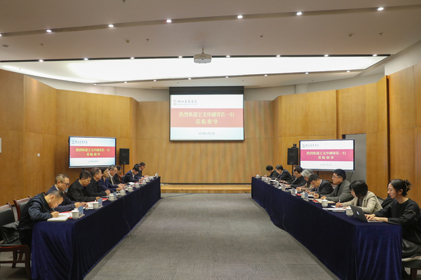 11月23日上午,浙江省副省長王文序一行就建設(shè)共同富裕示范區(qū)過程中健全殘疾人教育體系、凝聚社會助殘力量、合作助力亞殘運會等工作來校調(diào)研。省人民政府副秘書長徐曉光,省殘聯(lián)黨組書記、理事長蔡國春,省文化和旅游廳廳長、黨組書記褚子育,省教育廳副廳長于永明,以及省政府辦公廳、省殘聯(lián)、浙江特殊教育職業(yè)學(xué)院、浙江省盲人學(xué)校相關(guān)負(fù)責(zé)人陪同調(diào)研,學(xué)院黨委書記胡建新,副院長楊九華、張偉波參加調(diào)研,辦公室、教務(wù)處、招生辦公室等相關(guān)部門負(fù)責(zé)人參加座談。