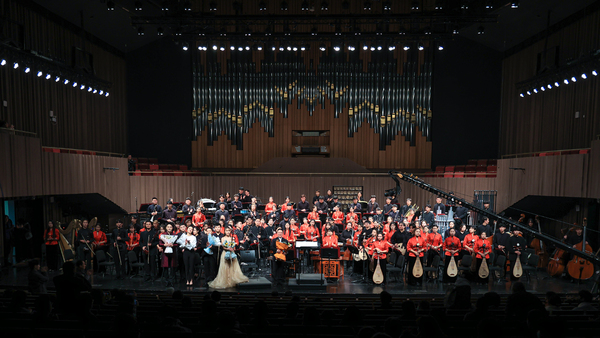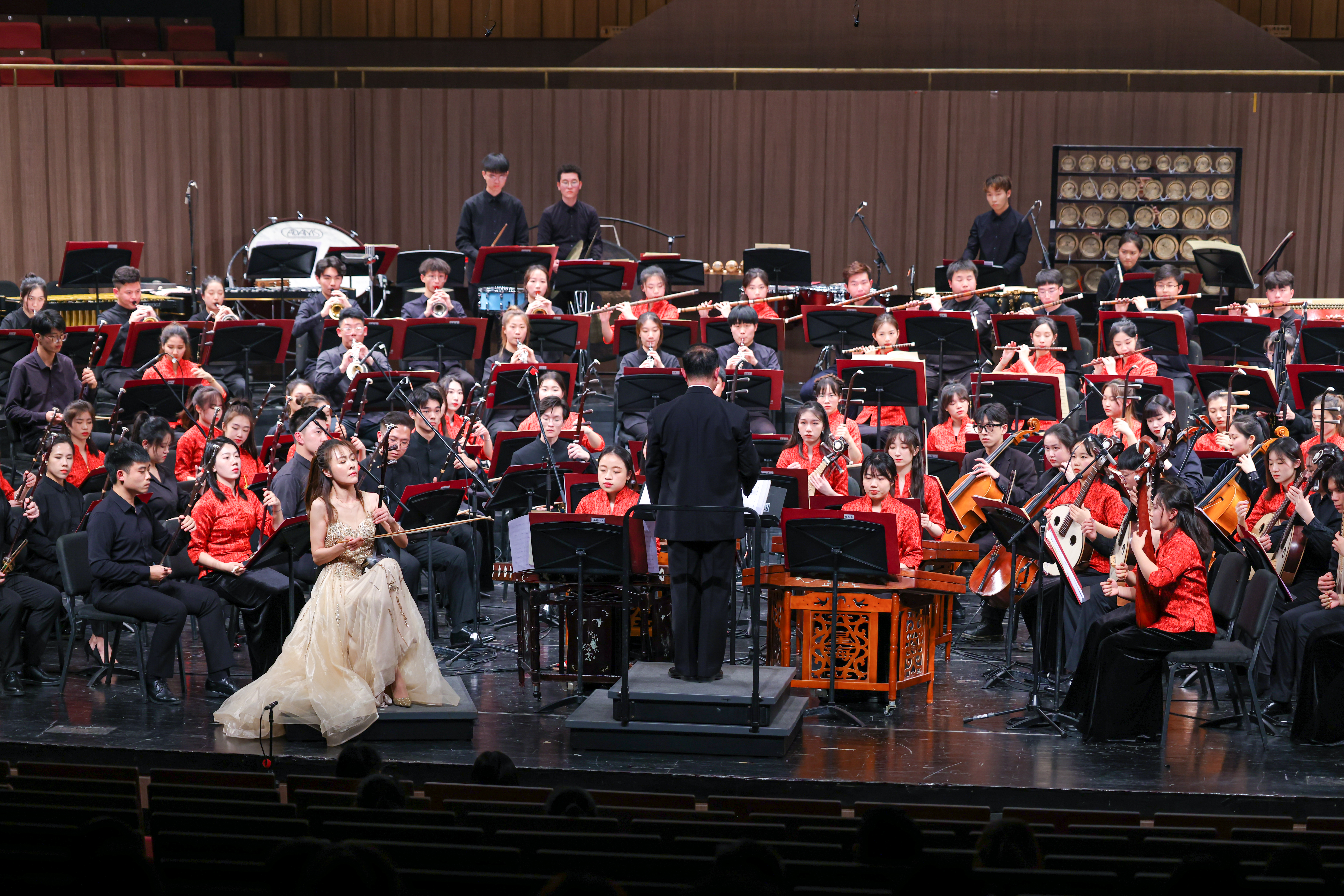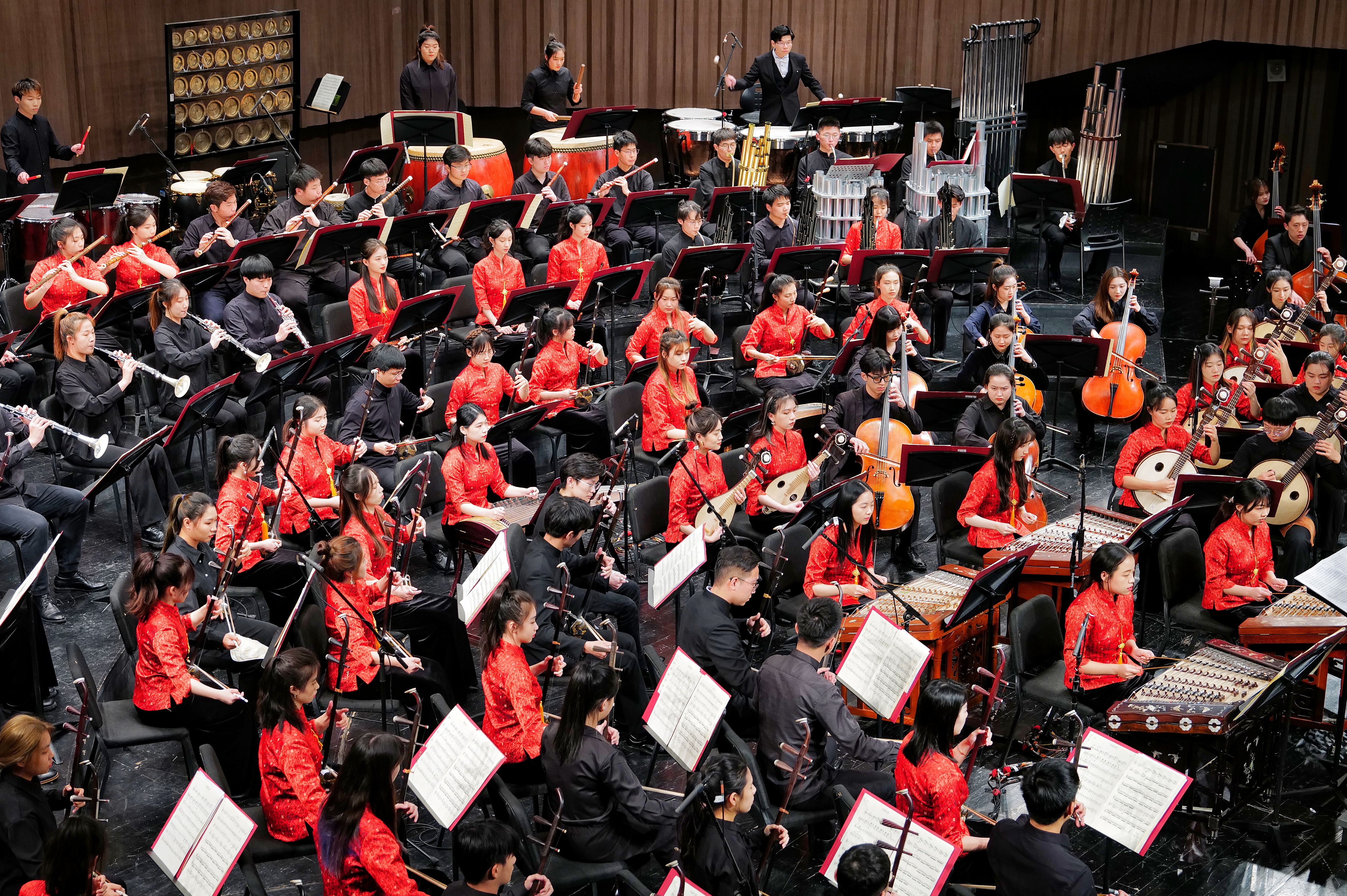 開幕式音樂會帶來5首作品,既有民族管弦樂,又有器樂協(xié)奏曲,且均為經(jīng)典之作。第一首作品是郭文景創(chuàng)作的民族管弦樂《阿佤山》,選取了佤族及其他云南少數(shù)民族音樂素材,粗獷而不失細(xì)膩,帶觀眾走入邊陲美景,表現(xiàn)了人與大自然融為一體的永恒力量;第二首是由學(xué)院青年作曲家王云飛創(chuàng)作的《英雄壯歌》,磅礴大氣、激昂恢弘的旋律讓觀眾感受到中國民族音樂的大氣之美;第三首是由國樂系系主任、民族樂隊(duì)學(xué)院藝術(shù)總監(jiān)王甫建教授創(chuàng)作的打擊樂與樂隊(duì)《大河奔流》,用民族管弦樂的聲音展示了黃河的奔流,如同中華民族般奮勇前行,生生不息;第四首琵琶協(xié)奏曲《草原英雄小姐妹》與第五首二胡協(xié)奏曲《長城隨想》由國樂系青年教師李躒、孔艷艷分別擔(dān)任主奏,與青年國樂團(tuán)共同完成,兩首樂曲風(fēng)格各異,收獲了現(xiàn)場觀眾熱烈的掌聲。