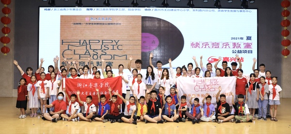 “快樂音樂教室”項目是集“思政教育、藝術(shù)教育、實踐教育”三位一體的社會實踐公益項目。項目秉承“事必盡善”校訓(xùn),旨在使大學(xué)生主動服務(wù)社會,通過社會大環(huán)境檢驗自身思政教育成果,讓文化藝術(shù)走進(jìn)公眾,助力鄉(xiāng)村文化教育振興,打造有“溫度”有“情懷”的社會公益實踐項目。團(tuán)隊由學(xué)院優(yōu)秀學(xué)生為主體成員,從2017年成立至今,先后赴貴州開展“文化扶貧”,赴臺州等基層文化禮堂開展“文藝下鄉(xiāng)”,赴嘉興、諸暨農(nóng)村小學(xué)開展藝術(shù)支教等活動,足跡遍布10余個市、縣、鄉(xiāng),社會影響較好。2019年,該項目入選浙江省改革開放40周年特展,團(tuán)隊代表學(xué)院參加全省社會實踐展示并受表彰,連續(xù)三年獲得“創(chuàng)新團(tuán)隊”“先進(jìn)團(tuán)隊”等榮譽(yù),并被光明網(wǎng)、浙江新聞、浙視頻、中國藍(lán)新聞、浙江在線、《錢江晚報》等多家國家級、省級主流媒體報道。