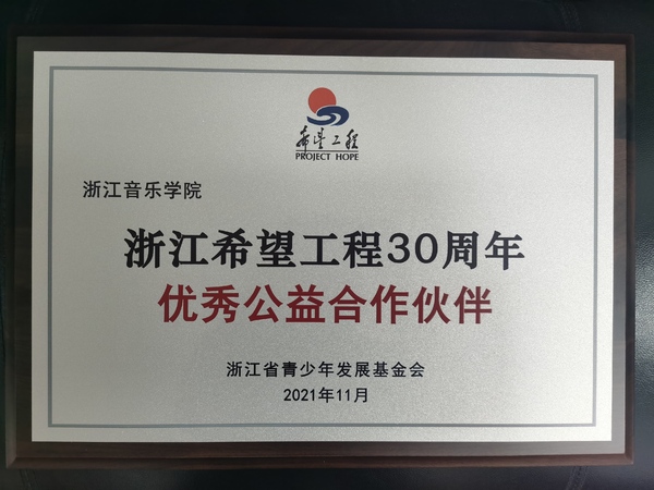 12月2日,團(tuán)浙江省委、浙江省青少年發(fā)展基金會在杭州召開浙江希望工程實施30周年座談會,深入傳達(dá)學(xué)習(xí)袁家軍書記的批示精神,并公布了省希望工程30周年“突出貢獻(xiàn)者”“優(yōu)秀公益合作伙伴”“希望之星”和“模范希望小學(xué)”名單。學(xué)院“快樂音樂教室”項目受到表彰,并榮獲“浙江希望工程30周年優(yōu)秀公益合作伙伴”(全省高校僅三所)。