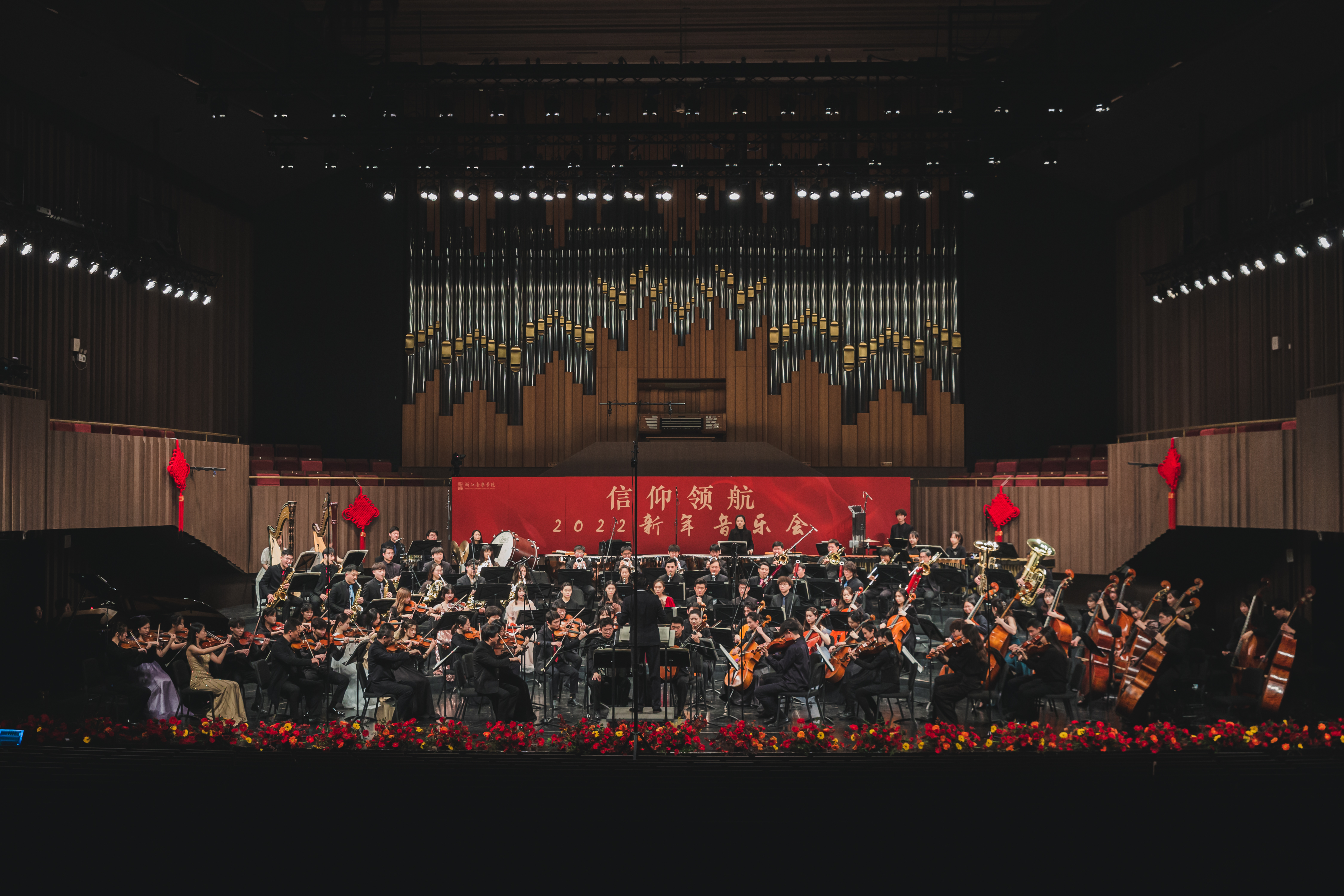 此次新年交響音樂會是學(xué)院師生精湛高超藝術(shù)水平的一次集中展示,也是浙音“教學(xué)與實(shí)踐并重”、培養(yǎng)綜合型高水平演奏藝術(shù)人才的重要舉措。由管弦系青年教師與優(yōu)秀學(xué)生組成的浙江音樂學(xué)院交響樂團(tuán)自成立以來,出色完成長征組歌——大型交響合唱音樂會、慶祝建黨百年“紅色經(jīng)典、代代相傳”主題音樂會、浙江省慶祝建黨百年大型交響詩畫《百年紅船 揚(yáng)帆遠(yuǎn)航》等重大演出任務(wù),在與國內(nèi)外一流音樂學(xué)院、一流院團(tuán)的交流中,成長為浙江重要的演奏力量。