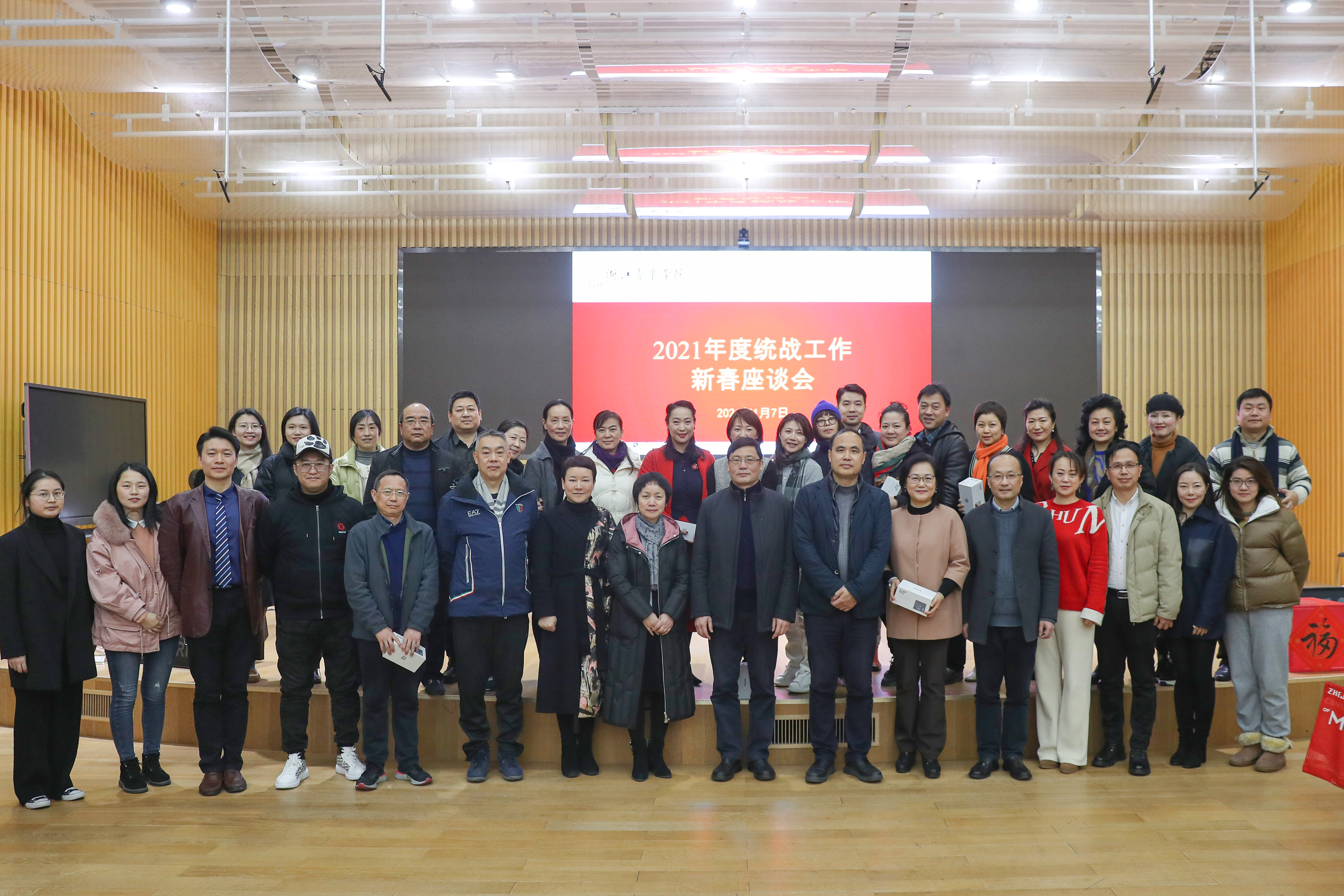 黨委書記胡建新代表學(xué)院向統(tǒng)一戰(zhàn)線廣大成員致以衷心感謝。他指出,2021年是具有里程碑意義的一年,中國(guó)共產(chǎn)黨迎來百年華誕,中共十九屆六中全會(huì)通過中國(guó)共產(chǎn)黨第三個(gè)歷史決議,第一個(gè)百年奮斗目標(biāo)勝利實(shí)現(xiàn)。這一年,浙音廣大師生員工勇于擔(dān)當(dāng)、團(tuán)結(jié)奮進(jìn),在學(xué)科建設(shè)、教育教學(xué)、隊(duì)伍建設(shè)、藝術(shù)實(shí)踐、科研創(chuàng)作、文化服務(wù)等方面取得了顯著成效。這一切,離不開學(xué)院統(tǒng)一戰(zhàn)線的各位成員長(zhǎng)期以來的幫助和支持,是大家風(fēng)雨同舟、共同奮斗的結(jié)果。2022年,中國(guó)共產(chǎn)黨將召開第二十次全國(guó)代表大會(huì),希望各位統(tǒng)戰(zhàn)人士更加緊密地團(tuán)結(jié)在以習(xí)近平同志為核心的黨中央周圍,凝心聚力,繼續(xù)做好新形勢(shì)下的統(tǒng)戰(zhàn)工作,攜手新征程、共促新發(fā)展,為高水平一流音樂學(xué)院的建設(shè)貢獻(xiàn)力量。