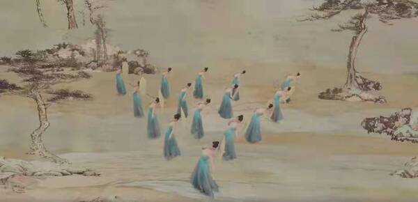 《憶江南》由浙江歌舞劇院、浙江音樂(lè)學(xué)院、杭州歌劇舞劇院共同出演。4分多鐘的節(jié)目,融合了吟誦、歌唱、舞蹈、表演以及現(xiàn)代科技呈現(xiàn)等多種元素,豐富又唯美。舞臺(tái)上,伴隨著悠揚(yáng)的音樂(lè)聲,卷軸緩緩打開(kāi),中國(guó)十大傳世名畫(huà)之一的《富春山居圖》“活”了過(guò)來(lái)。畫(huà)中,山巒連綿起伏、江水煙波浩渺,10余位江南女子在煙雨蒙蒙中行走著,陸續(xù)遇見(jiàn)了藝術(shù)家們飾演的樵夫、漁夫、讀書(shū)人等,他們跟隨著音樂(lè),或吟唱、或詩(shī)朗誦,仿佛經(jīng)歷了一場(chǎng)時(shí)空穿梭,為觀眾帶來(lái)了沉浸式的美感體驗(yàn)。