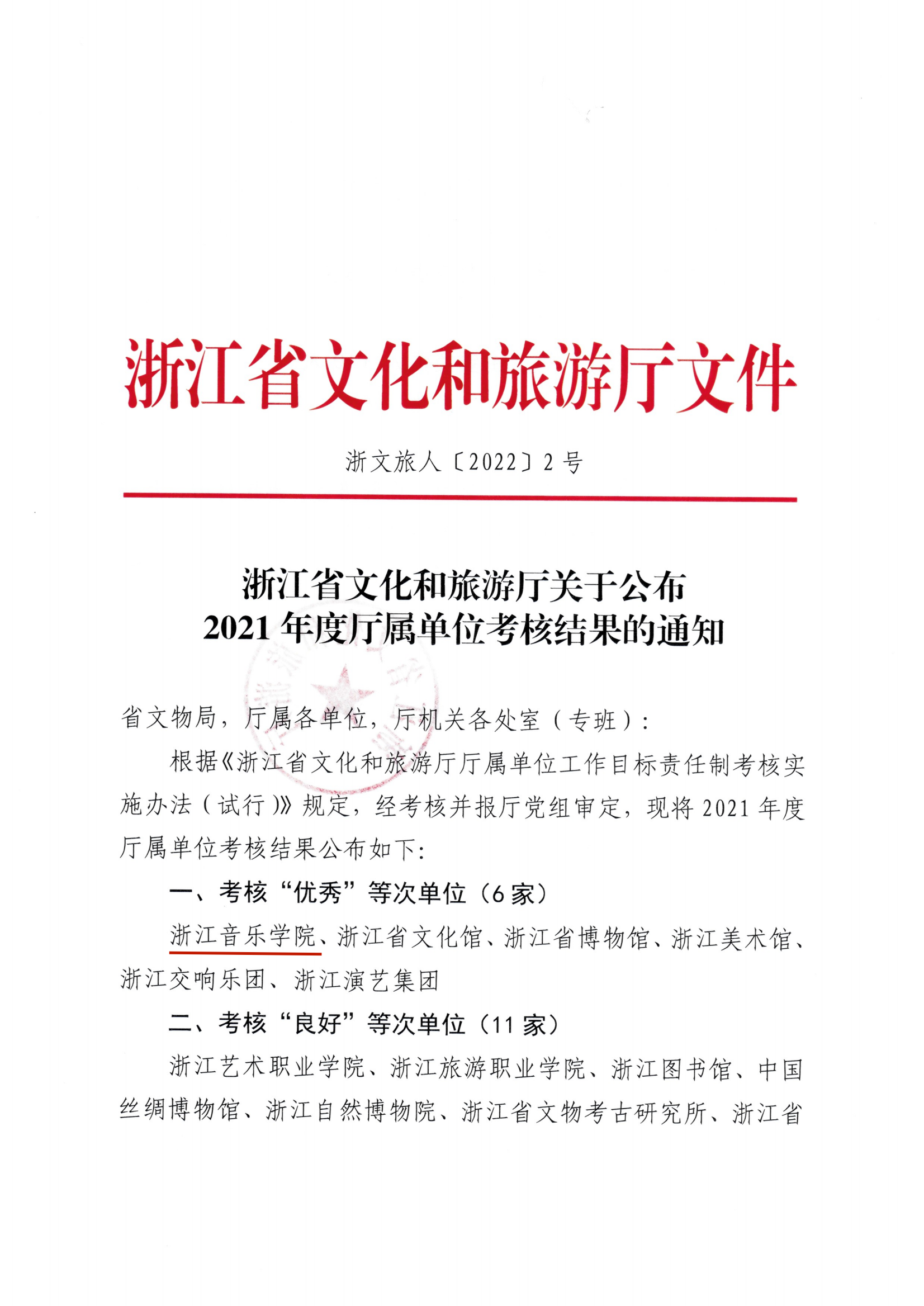 近日,浙江省文化和旅游廳公布了2021年度廳屬單位考核結果,浙江音樂學院等6家廳屬單位獲評優(yōu)秀,11家單位獲評良好。