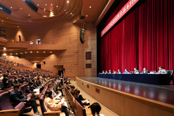 3月30日下午,為迎接教育部本科教學(xué)工作合格評估,有效推進下一階段迎評準備工作,學(xué)院在大劇院召開迎接教育部本科教學(xué)工作合格評估動員大會。學(xué)院黨政班子成員、全體中層領(lǐng)導(dǎo)干部、各系部(學(xué)院)教研室主任、教學(xué)秘書和教職工代表參加會議。