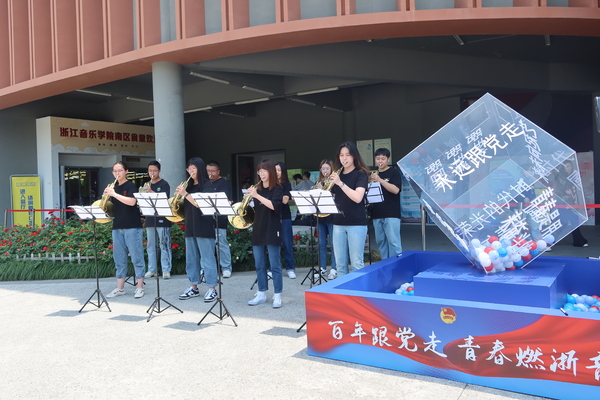 當(dāng)天,浙音學(xué)子以各種方式慶祝建團百年——大家在“青春助力夢想”互動裝置中投入自己的青春誓言,成為校園文化的一道靚麗風(fēng)景線;管弦系學(xué)子演奏了學(xué)生原創(chuàng)圓號重奏作品《五四青年風(fēng)》,該八重奏以紅色旋律為背景,融入新穎的切分節(jié)奏和微型的對位,用現(xiàn)代化和聲展示當(dāng)代青年的精神風(fēng)貌,表達(dá)對“五四精神”的崇高敬意;原創(chuàng)合唱音樂劇《天黑請閉眼》通過藝術(shù)形式,展現(xiàn)當(dāng)代?學(xué)?發(fā)揮集體的力量努?奮進(jìn)的堅定回音;音樂教育學(xué)院MTC合唱團在校園內(nèi)開展快閃表演,傳承五四精神,展現(xiàn)青年作為,共慶建團百年,共赴美好新時代。