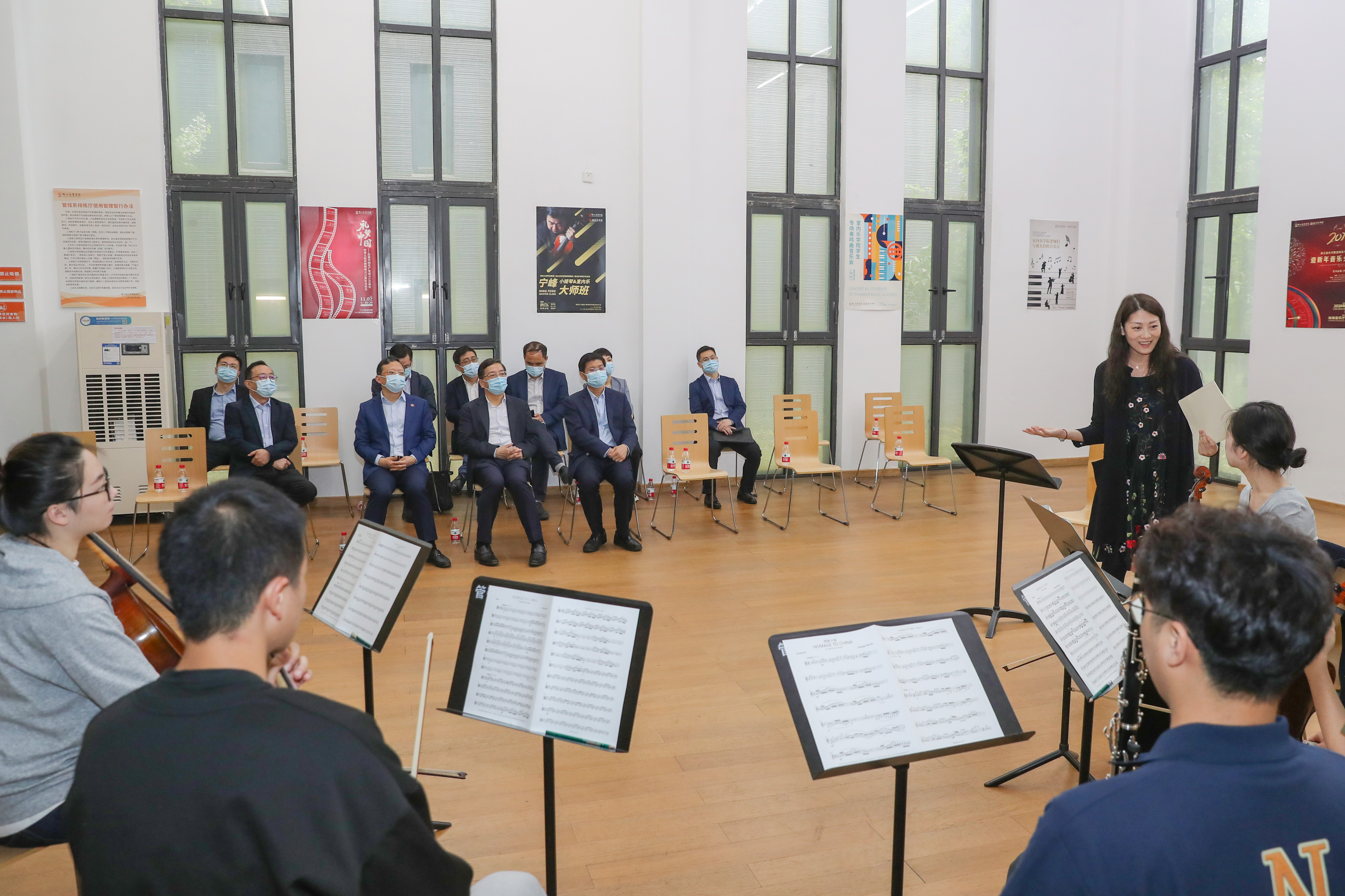 來(lái)穎杰一行深入教學(xué)一線,察看了民族樂(lè)隊(duì)學(xué)院、歌劇學(xué)院、室內(nèi)樂(lè)學(xué)院排練現(xiàn)場(chǎng),觀看了舞蹈學(xué)院課程思政成果《半條棉被》《一條大河》,并旁聽(tīng)學(xué)院青年講習(xí)所教師帶來(lái)的《我將無(wú)我、不負(fù)人民》音樂(lè)思政課。