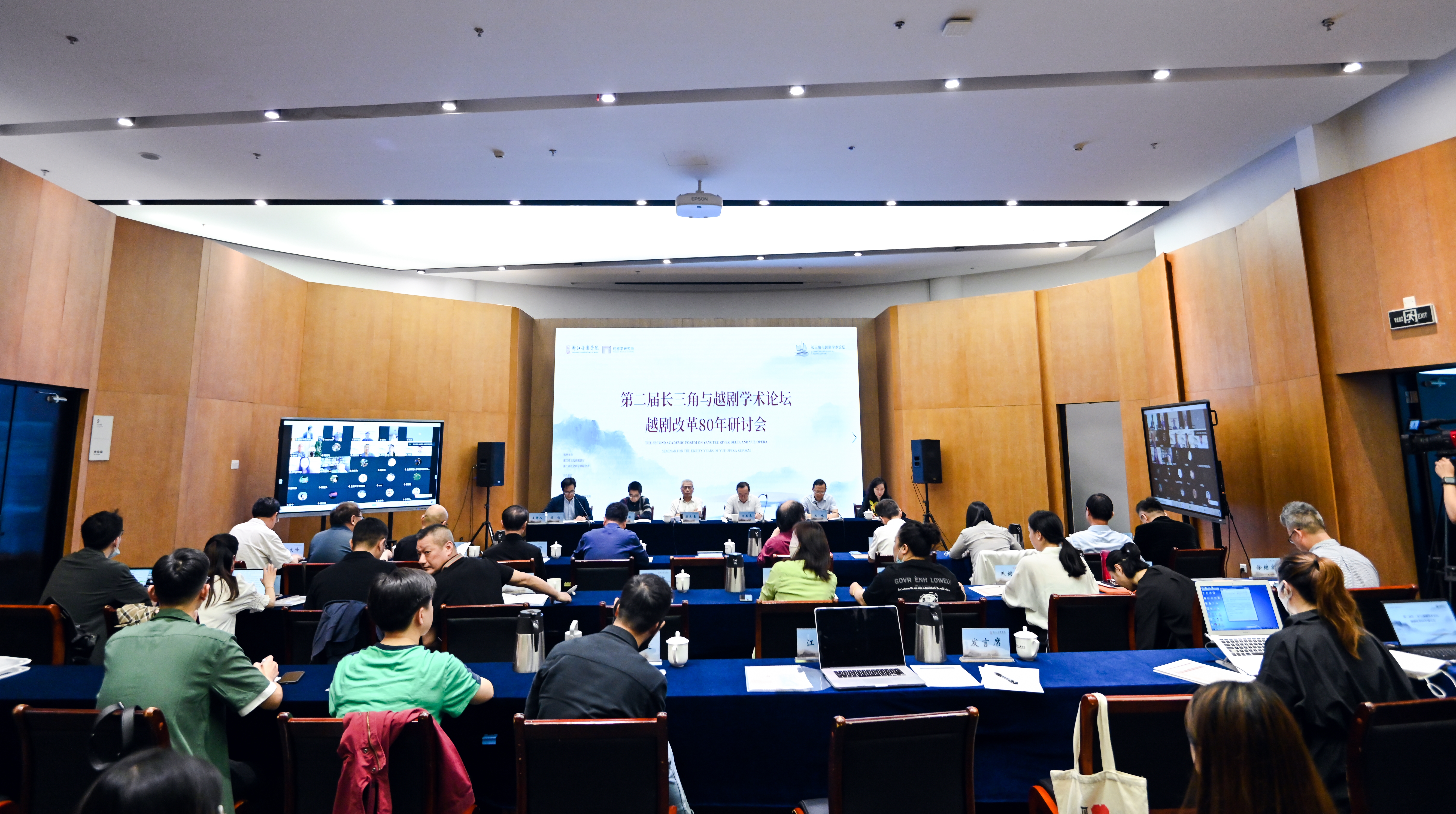 5月28日上午,由浙江省文化和旅游廳、浙江省社會(huì)科學(xué)屆聯(lián)合會(huì)指導(dǎo),學(xué)院主辦、戲劇學(xué)研究所承辦的第二屆長(zhǎng)三角與越劇學(xué)術(shù)論壇——越劇改革80年研討會(huì)在學(xué)院舉辦。省文化和旅游廳黨組成員、副廳長(zhǎng)刁玉泉,省社會(huì)科學(xué)界聯(lián)合會(huì)黨組成員、副主席陳先春,學(xué)院院長(zhǎng)王瑞、副院長(zhǎng)汪洋,以及中國(guó)藝術(shù)研究院研究員、戲曲研究所原所長(zhǎng)王安葵,中國(guó)戲曲學(xué)院研究員周育德,中國(guó)戲劇家協(xié)會(huì)秘書(shū)長(zhǎng)崔偉,上海市藝術(shù)創(chuàng)作中心一級(jí)編劇羅懷臻等來(lái)自全國(guó)科研院所、行業(yè)協(xié)會(huì)、院團(tuán)、高校等40余位相關(guān)領(lǐng)域?qū)<彝ㄟ^(guò)線上線下結(jié)合的方式參加研討。