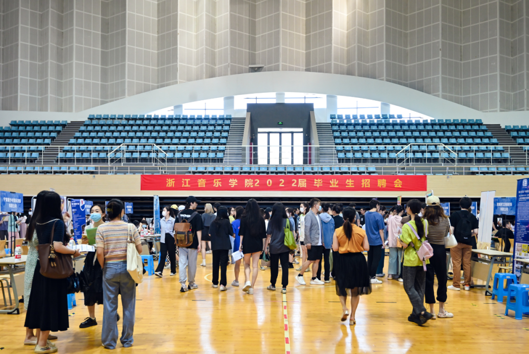 隨后,由學院、浙江省文化產業(yè)促進會、杭州市人才管理服務中心、杭州市就業(yè)管理服務中心聯(lián)合舉辦的2022屆畢業(yè)生招聘會啟動。招聘會以富有音樂特色的主題表演拉開序幕后,企業(yè)代表宣講崗位需求,并與學生一對一開展溝通交流。