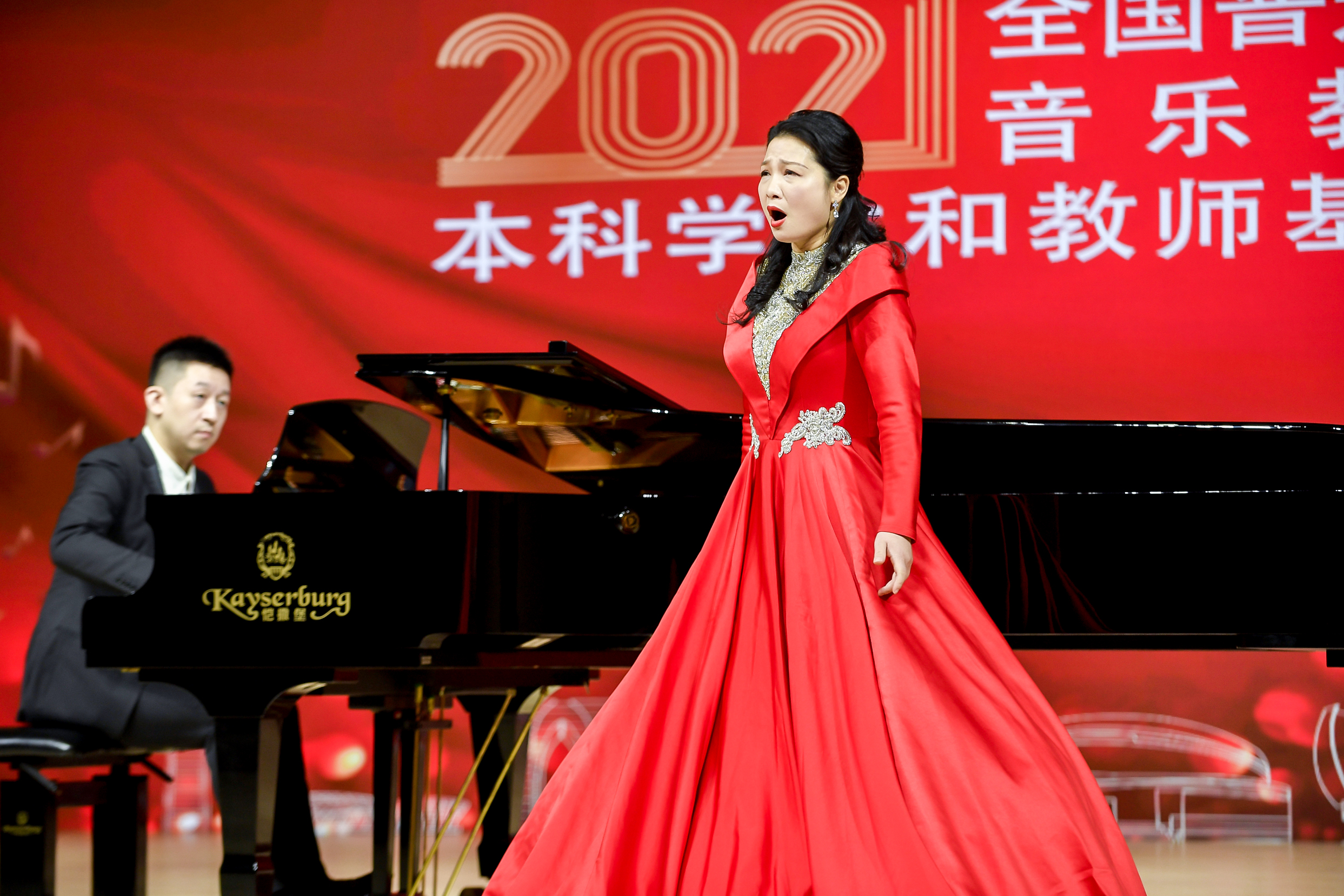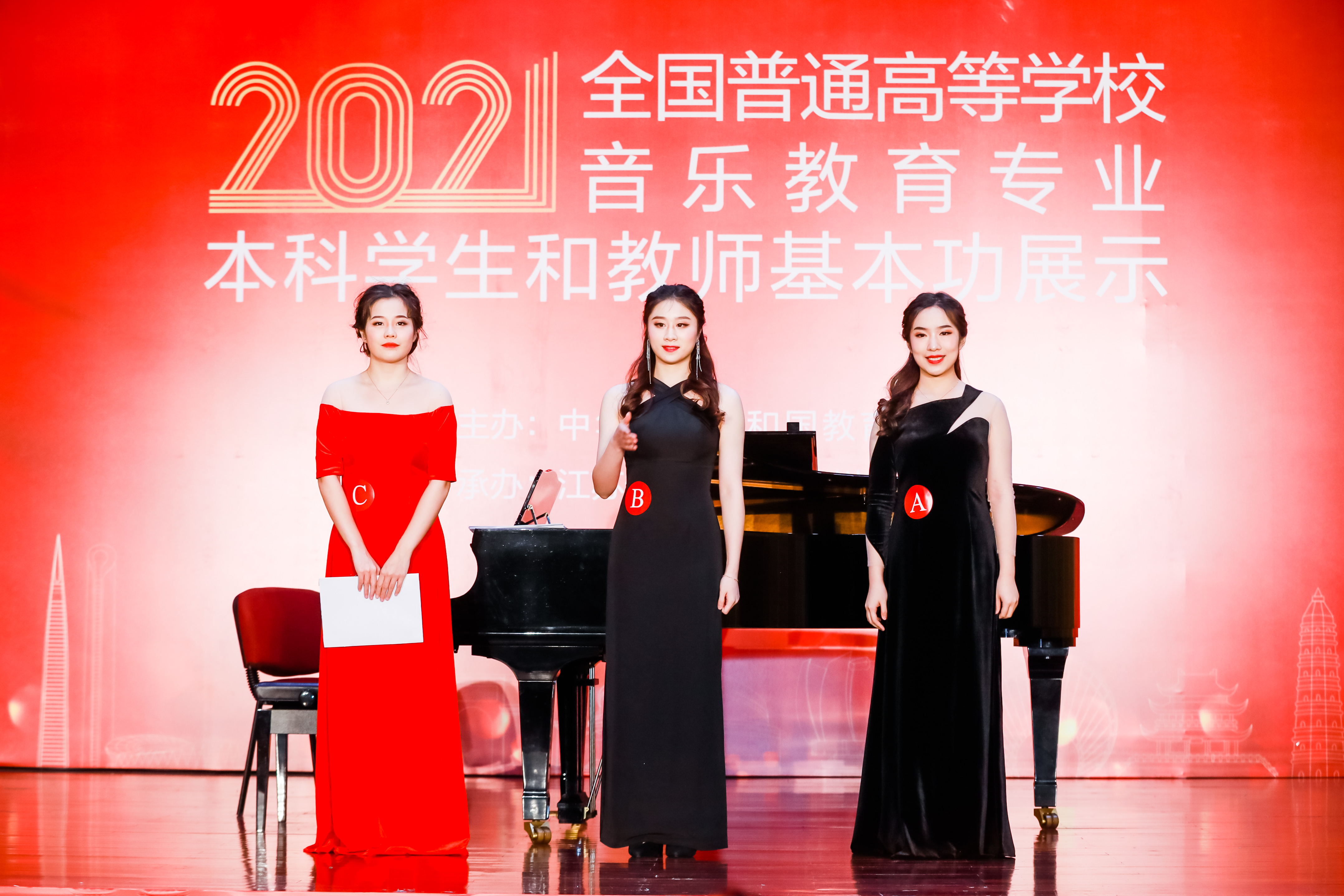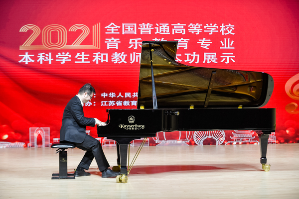 全國(guó)普通高等學(xué)校音樂(lè)教育專(zhuān)業(yè)本科學(xué)生和教師基本功展示活動(dòng)由教育部主辦,每?jī)赡昱e辦一屆,是國(guó)內(nèi)音樂(lè)教育專(zhuān)業(yè)最高規(guī)格的國(guó)家級(jí)賽事。本屆展示活動(dòng)由江蘇省教育廳和蘇州大學(xué)承辦,共有來(lái)自全國(guó)31個(gè)?。ㄊ小^(qū))和新疆生產(chǎn)建設(shè)兵團(tuán)的77所高校225位教師、65所高校195位學(xué)生參賽。自2021年8月確定參展學(xué)生名單后,音樂(lè)教育學(xué)院堅(jiān)持點(diǎn)面結(jié)合,組織指導(dǎo)教師和參賽學(xué)生進(jìn)行賽前集訓(xùn),積極投入到各參展項(xiàng)目的準(zhǔn)備當(dāng)中,最終不負(fù)眾望取得佳績(jī),充分展現(xiàn)了師生堅(jiān)實(shí)的專(zhuān)業(yè)功底和良好的綜合素養(yǎng)。