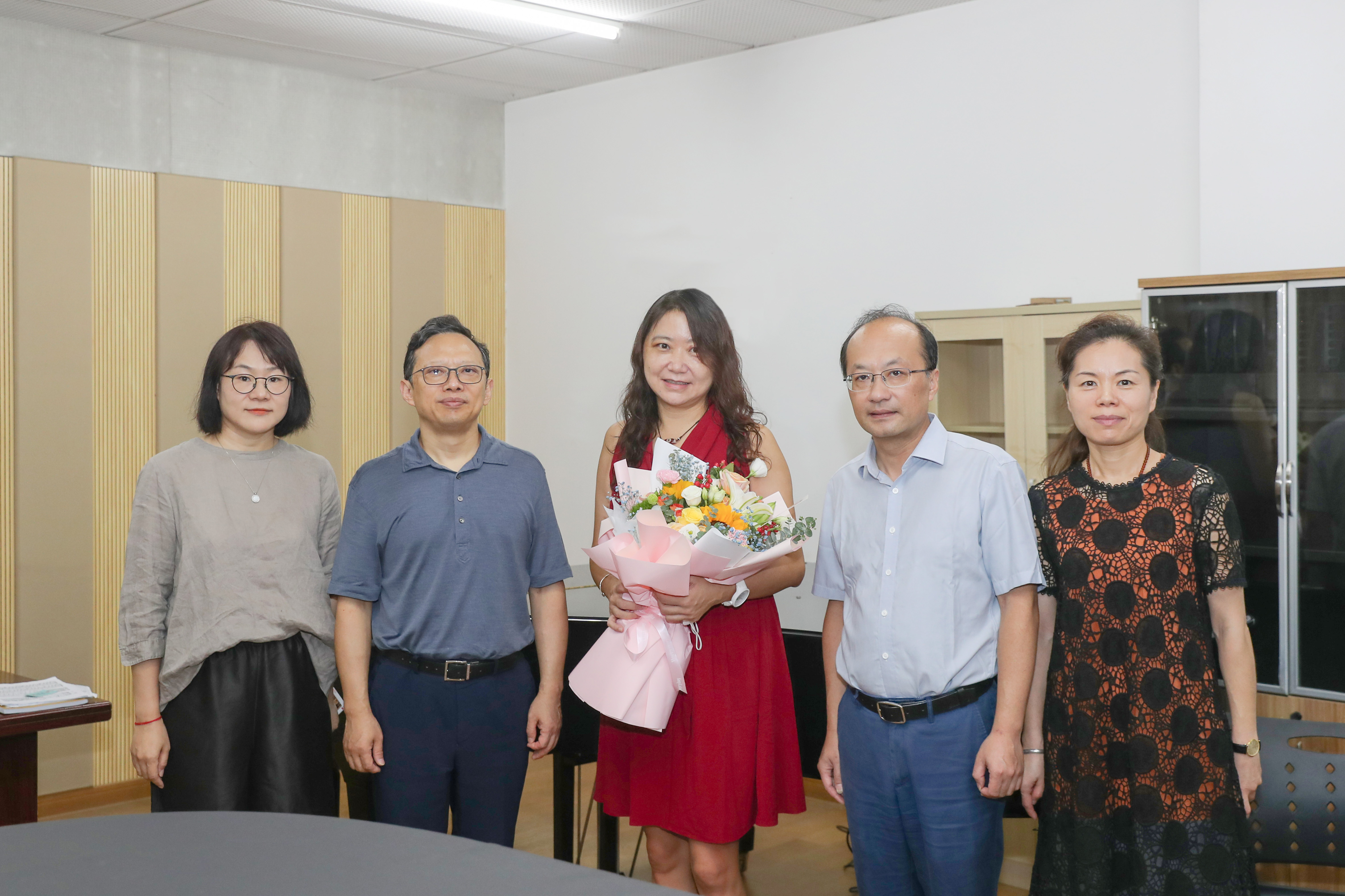 黨委書記干武東看望全國普通高等學(xué)校音樂教育專業(yè)教師基本功個(gè)人全能獎(jiǎng)一等獎(jiǎng)獲得者金美玲老師
