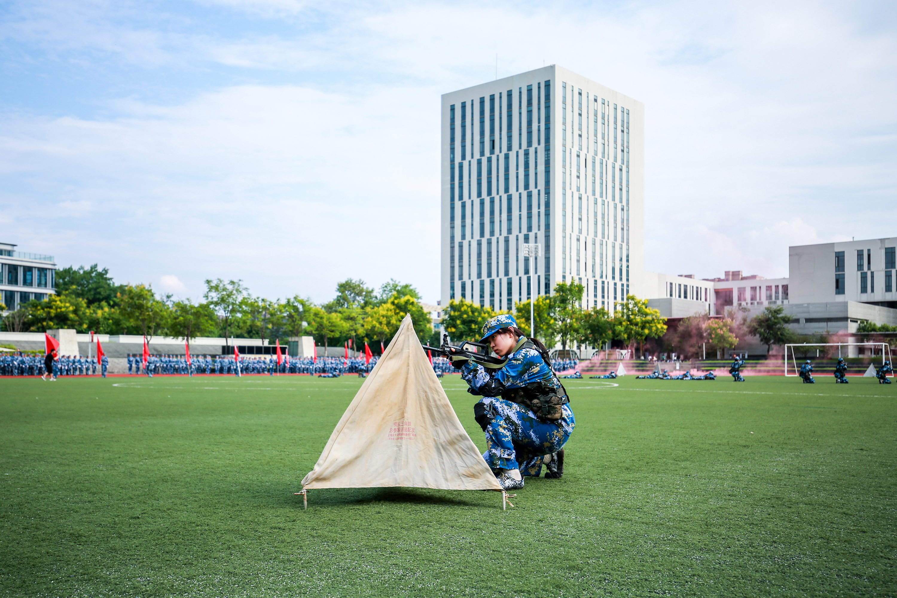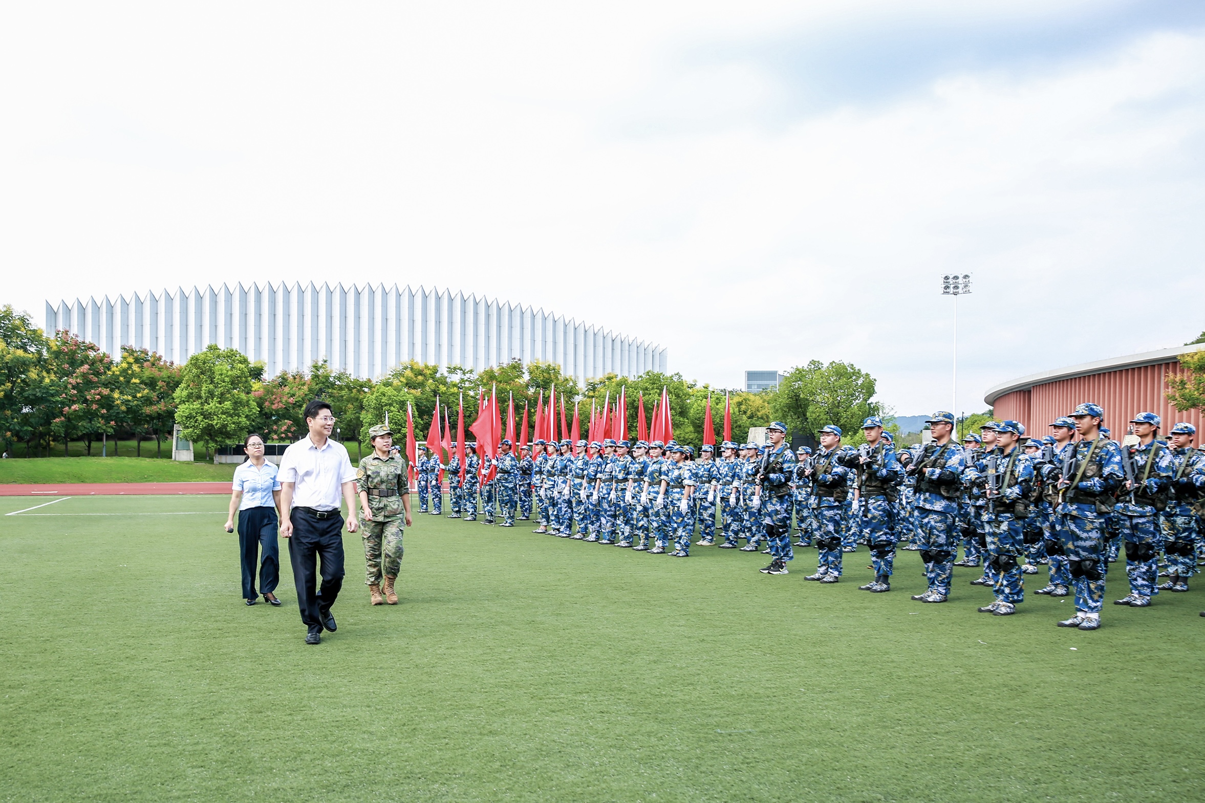 9月16日下午,學(xué)院2022級(jí)本科生軍訓(xùn)總結(jié)大會(huì)在田徑場(chǎng)舉行。學(xué)院黨政領(lǐng)導(dǎo)班子成員干武東、王瑞、王均寅、蔡亦軍、楊九華、張偉波、應(yīng)達(dá)偉、李俊,中國(guó)人民解放軍駐杭部隊(duì)中校副參謀長(zhǎng)夏武寧,學(xué)院相關(guān)職能部門、各院系黨政負(fù)責(zé)人,全體帶訓(xùn)教官、助理教官、輔導(dǎo)員、新生班主任及受訓(xùn)學(xué)生參加??偨Y(jié)大會(huì)由副院長(zhǎng)楊九華主持。