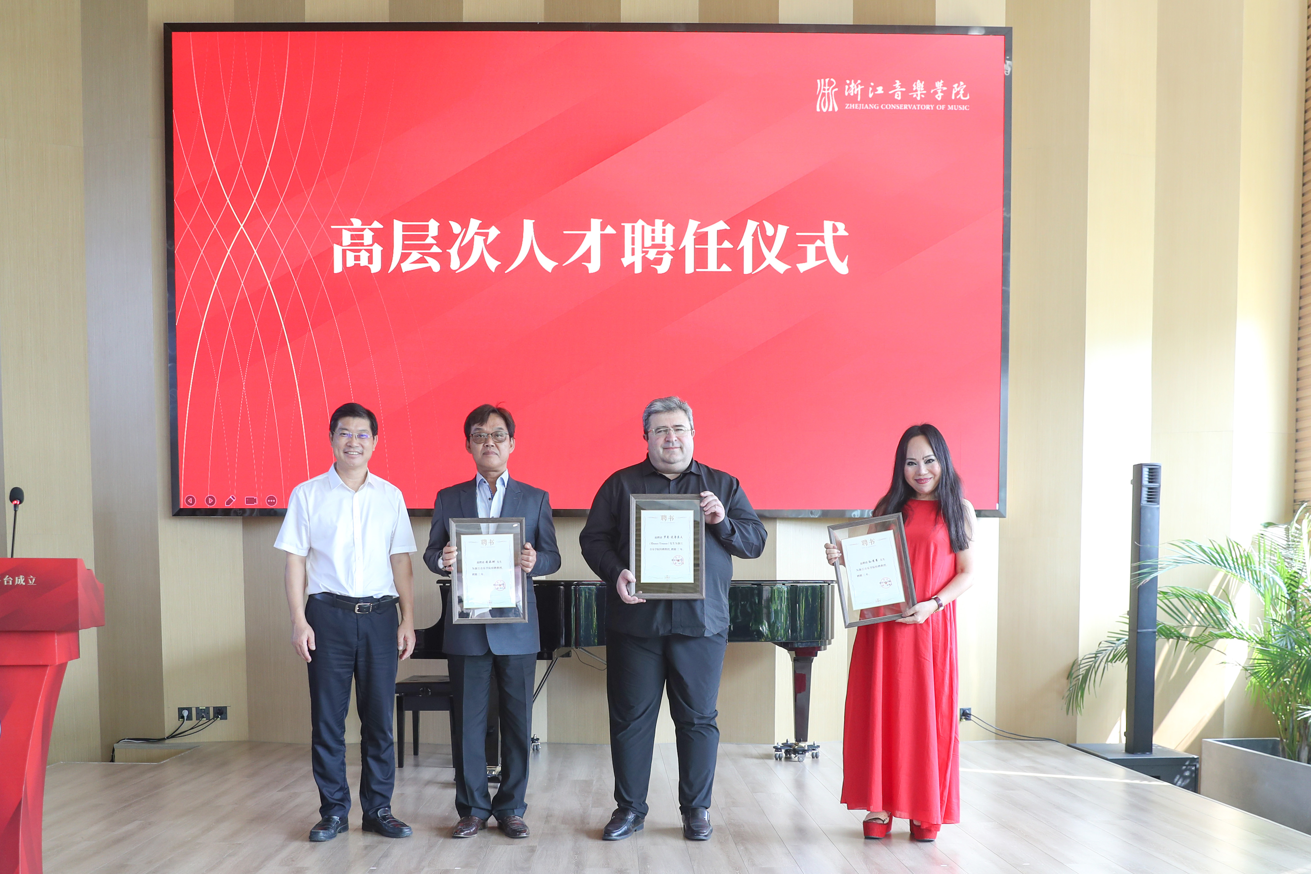 學(xué)院聘任張藝為浙江音樂(lè)學(xué)院樂(lè)隊(duì)學(xué)院藝術(shù)總監(jiān),郭義江、何凡為浙江音樂(lè)學(xué)院客座教授;聘任王甫建為浙江音樂(lè)學(xué)院民族室內(nèi)樂(lè)團(tuán)藝術(shù)總監(jiān),焦陽(yáng)為浙江音樂(lè)學(xué)院室內(nèi)管弦樂(lè)團(tuán)藝術(shù)總監(jiān);聘任孫秀葦、羅曼·克魯莫夫?yàn)楦鑴W(xué)院教授,安承弼為電子音樂(lè)中心主任。