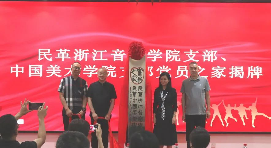 劉正、蔡亦軍、民革浙音支部主委于鐘、美院支部主委張愛(ài)國(guó)共同為民革黨員之家揭牌。