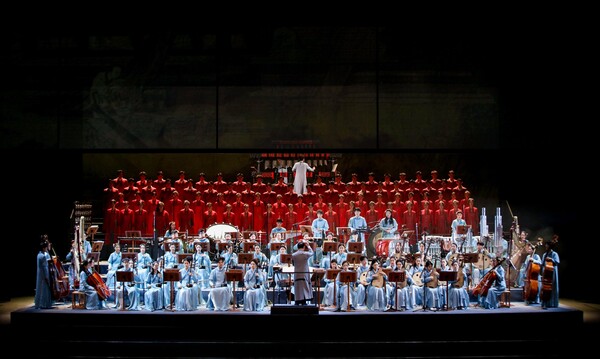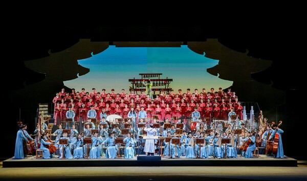 “此次演出并非對宋文化簡單、具象的復(fù)原和再現(xiàn),而是立足于深挖傳統(tǒng)文化元素、立足于作曲家對宋代文化、思想、觀念充分理解的基礎(chǔ)上,運用當代作曲技法進行的全新創(chuàng)作,具有很強的時代性、未來性。”副院長汪洋教授介紹,《宋韻·華章》在創(chuàng)作過程中,創(chuàng)新形成了以對宋韻文化理念的詮釋為明線、以對新時代的禮贊華章為暗線的“雙層結(jié)構(gòu)”,并運用大型民族交響樂這一恢弘的藝術(shù)形式,在深刻詮釋宋韻大美的同時,構(gòu)成了一部跨越千年、禮贊時代的大型民族音樂精品力作,為觀眾呈現(xiàn)出一場恢弘大氣、美輪美奐的舞臺藝術(shù)史詩。與此同時,作品還突破了傳統(tǒng)的音樂會模式,以沉浸式的舞臺呈現(xiàn)、高科技的音畫效果展示宋韻美學(xué),用環(huán)繞立體聲的呈現(xiàn)增強觀眾的聽覺感受,力求將音樂藝術(shù)與視覺藝術(shù)完美結(jié)合,從而使觀眾獲得一次貫通古今的視聽盛宴。