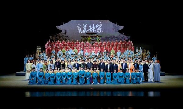 《宋韻·華章》由中共浙江省委宣傳部、浙江省文化和旅游廳指導(dǎo),浙江音樂學(xué)院、浙江省音樂家協(xié)會主辦,并入選文化和旅游部2022—2023年度“時代交響”創(chuàng)作扶持計劃。作品旨在踐行宋韻文化傳世工程要求,以音樂藝術(shù)的形式,充分挖掘宋文化的深厚底蘊,弘揚與時俱進的浙江精神,打造以宋韻文化為代表的浙江“金名片”。作品于2021年立項后,迅速成立了由院長王瑞總負責(zé),副院長汪洋具體執(zhí)行的《宋韻·華章》工作專班,整合了藝術(shù)處、作曲與指揮系、國樂系、聲樂歌劇系、舞蹈學(xué)院等各部門、系部的優(yōu)秀創(chuàng)作表演力量,由學(xué)院教師、知名青年作曲家王云飛、朱慧、李珺等擔(dān)任作曲,一級編劇蔣巍擔(dān)任文學(xué)統(tǒng)籌,著名指揮家王甫建、周展擔(dān)任指揮,黃德俊擔(dān)任副導(dǎo)演,青年教師昊塵擔(dān)任合唱指揮,220余位演出人員全部為浙音師生。與此同時,國家一級導(dǎo)演、浙江歌劇舞劇院副書記蔣新光,國家一級舞美設(shè)計裘冰,國際知名舞臺燈光設(shè)計師周正平等省內(nèi)一流創(chuàng)作演出力量匯集,最終呈現(xiàn)了一臺精美絕倫、氣勢恢宏的大型精品演出。