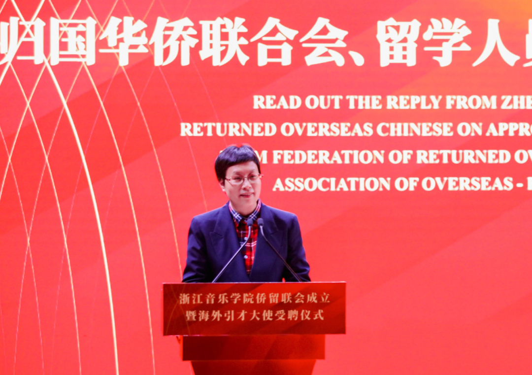 為進(jìn)一步團(tuán)結(jié)廣大歸國華僑、僑眷和留學(xué)歸國人員,凝心聚力,集聚更多高質(zhì)量僑留屆英才,賦能助力高水平一流音樂學(xué)院建設(shè),11月23日下午,歸國華僑聯(lián)合會、留學(xué)人員聯(lián)誼會成立暨海外引才大使受聘儀式在學(xué)院現(xiàn)代音樂廳舉行。省僑聯(lián)黨組書記、主席莊莉萍,省僑聯(lián)黨組成員、副主席姚君明,省文旅廳黨組成員、副廳長朱海閔,西湖區(qū)區(qū)委常委、統(tǒng)戰(zhàn)部部長柴聞樂,學(xué)院黨政領(lǐng)導(dǎo)班子成員干武東、王瑞、蔡亦軍、奚麗萍、李俊出席成立儀式。成立儀式由黨委副書記蔡亦軍主持。