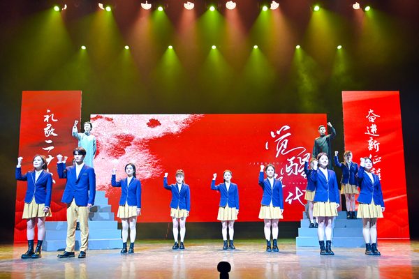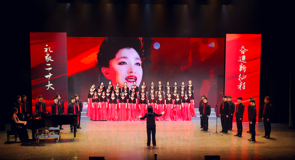 展演節(jié)目緊扣學(xué)習(xí)宣傳貫徹黨的二十大精神主題主線,讓黨的二十大精神通過藝術(shù)形式呈現(xiàn),將黨的二十大報告中的“偉大建黨精神”“用好紅色資源”“青年強,則國家強”“弘揚革命文化”“傳承中華優(yōu)秀傳統(tǒng)文化”等論述論點充分結(jié)合并融入,是思政課程和課程思政的一次協(xié)同和聯(lián)動。演出序幕伴著有“國歌音符的延續(xù)”之稱的《紅旗頌》的經(jīng)典旋律徐徐拉開,紅旗飄揚的形象貫穿全場,音符中涌動著浙音學(xué)子熾熱的愛國情懷;歌曲聯(lián)唱《歸途有風(fēng)》《如訴盛世》《燃》,既有浙音學(xué)子的原創(chuàng)作品,也有緊跟“冬奧會”等現(xiàn)實題材的藝術(shù)演繹,充分展現(xiàn)浙音青年在青春賽道上勇毅奮發(fā)的“燃文化”;舞蹈《映山紅》是紅色經(jīng)典的再演繹,“嶺上開遍映山紅”昭示著革命前輩永不褪色的熱血青春;100年前,先進分子和進步青年們追求真理、追逐理想的歲月,在情景朗誦《覺醒年代》中再現(xiàn),新時代青年承繼先輩偉力投身第二個百年奮斗目標的莊嚴宣誓,讓人心潮澎湃;鋼琴獨奏《我的祖國》讓那條寄托無數(shù)中國人情感的“大河”以音樂的形式緩緩走入內(nèi)心,淋漓盡致地表達了英雄兒女對家國的赤子之情;古風(fēng)今韻的越歌表演唱《沒有共產(chǎn)黨就沒有新中國》以及琵琶重奏《唱支山歌給黨聽》,將革命文化和中華優(yōu)秀傳統(tǒng)文化融為一體,以戲韻國風(fēng)全新演繹紅色經(jīng)典,深情表達對黨的無限熱愛;聲樂小組唱《在希望的田野上》,展現(xiàn)了新時代中國共產(chǎn)黨人在希望的田野上奔赴美好未來的豪情;合唱《領(lǐng)航》唱響了中國共產(chǎn)黨在習(xí)近平新時代中國特色社會主義思想引領(lǐng)下,為實現(xiàn)中華民族偉大復(fù)興中國夢而踔厲奮發(fā)、勇毅前行的凌云壯志。