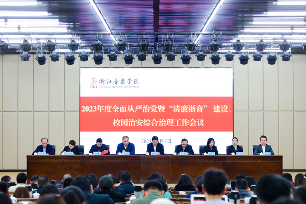 為深入學(xué)習(xí)領(lǐng)會(huì)習(xí)近平總書記關(guān)于全面從嚴(yán)治黨重要論述精神,全面貫徹黨的二十大、省第十五次黨代會(huì)精神,認(rèn)真落實(shí)二十屆中央紀(jì)委二次全會(huì)、省紀(jì)委十五屆二次全會(huì)和省級(jí)宣傳文化系統(tǒng)、教育系統(tǒng)、文旅系統(tǒng)全面從嚴(yán)治黨工作會(huì)的要求,大力推進(jìn)學(xué)院全面從嚴(yán)治黨工作,4月3日下午,學(xué)院召開2023年度全面從嚴(yán)治黨暨“清廉浙音”建設(shè)、校園治安綜合治理工作會(huì)議。學(xué)院全體黨政班子成員出席,院長王瑞主持會(huì)議。