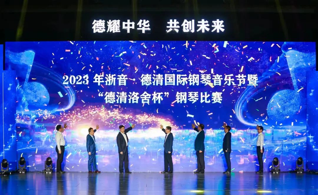 啟動(dòng)儀式上,學(xué)校和德清雙方領(lǐng)導(dǎo)上臺(tái)共同啟動(dòng)了2023浙音·德清國(guó)際鋼琴音樂節(jié)暨“德清洛舍杯”鋼琴比賽大屏。