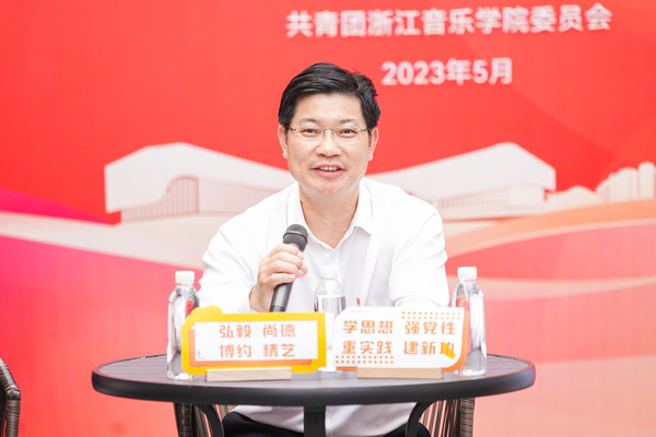 干武東首先回顧了五四青年節(jié)的歷史,并向全校青年學(xué)子和青年朋友們致以節(jié)日的問候和美好的祝愿。他指出,作為一所年輕的音樂藝術(shù)院校,廣大青年教師、干部和學(xué)子以“事必盡善”校訓(xùn)為遵循,以“弘毅尚德、博約精藝”核心價(jià)值理念為追求,為學(xué)院跨越式發(fā)展和“高水平一流”音樂學(xué)院建設(shè)發(fā)揮了應(yīng)有的作用、作出了積極貢獻(xiàn)。他提出三點(diǎn)希望:一是要以“學(xué)思想”為引領(lǐng),筑牢信仰之基。廣大青年要按照中央、省委的統(tǒng)一決策部署和學(xué)院黨委的統(tǒng)一安排,積極主動(dòng)投入主題教育各項(xiàng)活動(dòng),帶頭讀原著學(xué)原文悟原理,在學(xué)思踐悟中全面領(lǐng)會(huì)習(xí)近平新時(shí)代中國特色社會(huì)主義思想的科學(xué)體系、精髓要義、實(shí)踐要求,在以學(xué)鑄魂、以學(xué)增智、以學(xué)正風(fēng)、以學(xué)促干中深刻領(lǐng)悟“兩個(gè)確立”的決定性意義,切實(shí)筑牢信仰之基、補(bǔ)足精神之鈣、把穩(wěn)思想之舵,進(jìn)一步增強(qiáng)忠誠核心、擁戴核心、維護(hù)核心、捍衛(wèi)核心的政治自覺、思想自覺、行動(dòng)自覺。二是要以“強(qiáng)本領(lǐng)”為主旨,擦亮青春底色。廣大青年教師和青年干部要以“立德樹人”為根本,立足本職崗位,以比學(xué)趕超的精氣神,勇?lián)鷮W(xué)院改革創(chuàng)新、事業(yè)發(fā)展的排頭兵,努力成大師、創(chuàng)大作、設(shè)大幕、樹大我,以一流的業(yè)績?yōu)檎阋糨x煌燦爛的明天建功立業(yè)。廣大青年學(xué)子要珍惜在浙音的美好時(shí)光,在努力學(xué)習(xí)專業(yè)知識(shí)的同時(shí),更要注重自身綜合素質(zhì)的培養(yǎng)和提升,不斷練就過硬本領(lǐng),立志做有理想、敢擔(dān)當(dāng)、能吃苦、肯奮斗的新時(shí)代好青年,為將來投身社會(huì)、報(bào)效祖國打好基礎(chǔ)。三是要以“重實(shí)踐”為原則,扛起青年責(zé)任。廣大浙音學(xué)子要深入基層、“自找苦吃”,積極投身志愿服務(wù)活動(dòng),以“文藝輕騎兵”等形式主動(dòng)送文藝下基層,將最好文藝節(jié)目送到老百姓的家門口,普及高雅藝術(shù),豐富群眾業(yè)余文化生活,助力共同富裕示范區(qū)建設(shè)。離開學(xué)校后,也要將就業(yè)的目光更多投向基層,主動(dòng)到祖國和人民最需要的基層去工作,在基層的鍛煉中不斷磨練自己的品格、增長自己的才干、成就自己的夢想。以接續(xù)奮斗的精氣神,走好新時(shí)代的趕考路,在譜寫浙江“兩個(gè)先行”浙音篇章中貢獻(xiàn)更多青春力量。