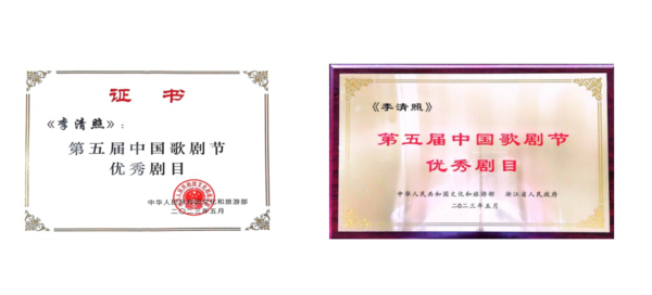 由文化和旅游部、浙江省人民政府主辦,文化和旅游部藝術(shù)司、浙江省文化和旅游廳、嘉興市人民政府、中國(guó)歌劇研究會(huì)承辦,浙江演藝集團(tuán)、浙江省嘉興市秀洲區(qū)人民政府協(xié)辦的第五屆中國(guó)歌劇節(jié),5月24日晚在浙江嘉興秀湖音樂廳閉幕,我校和浙江演藝集團(tuán)(浙江歌舞劇院有限公司)共同創(chuàng)排的原創(chuàng)民族歌劇《李清照》喜獲優(yōu)秀劇目獎(jiǎng)。副院長(zhǎng)董德君教授代表學(xué)校領(lǐng)獎(jiǎng)。